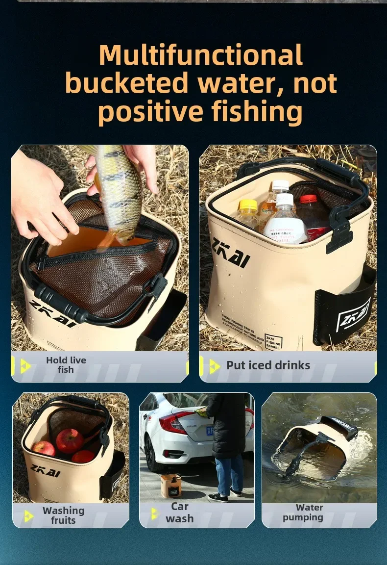 This fishing camping bucket is perfect for storing live bait, carrying water, and even washing your car,making it easy to carry around.