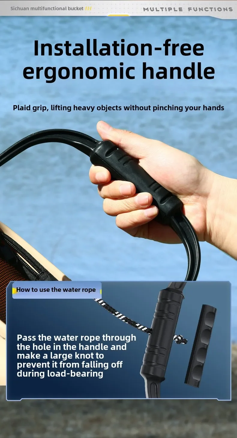 Ergonomic Handle: The bucket is equipped with an ergonomic handle that reduces hand pressure and makes it comfortable to carry. The handle is also strong and durable, with exquisite stitching that ensures it will last for a long time.