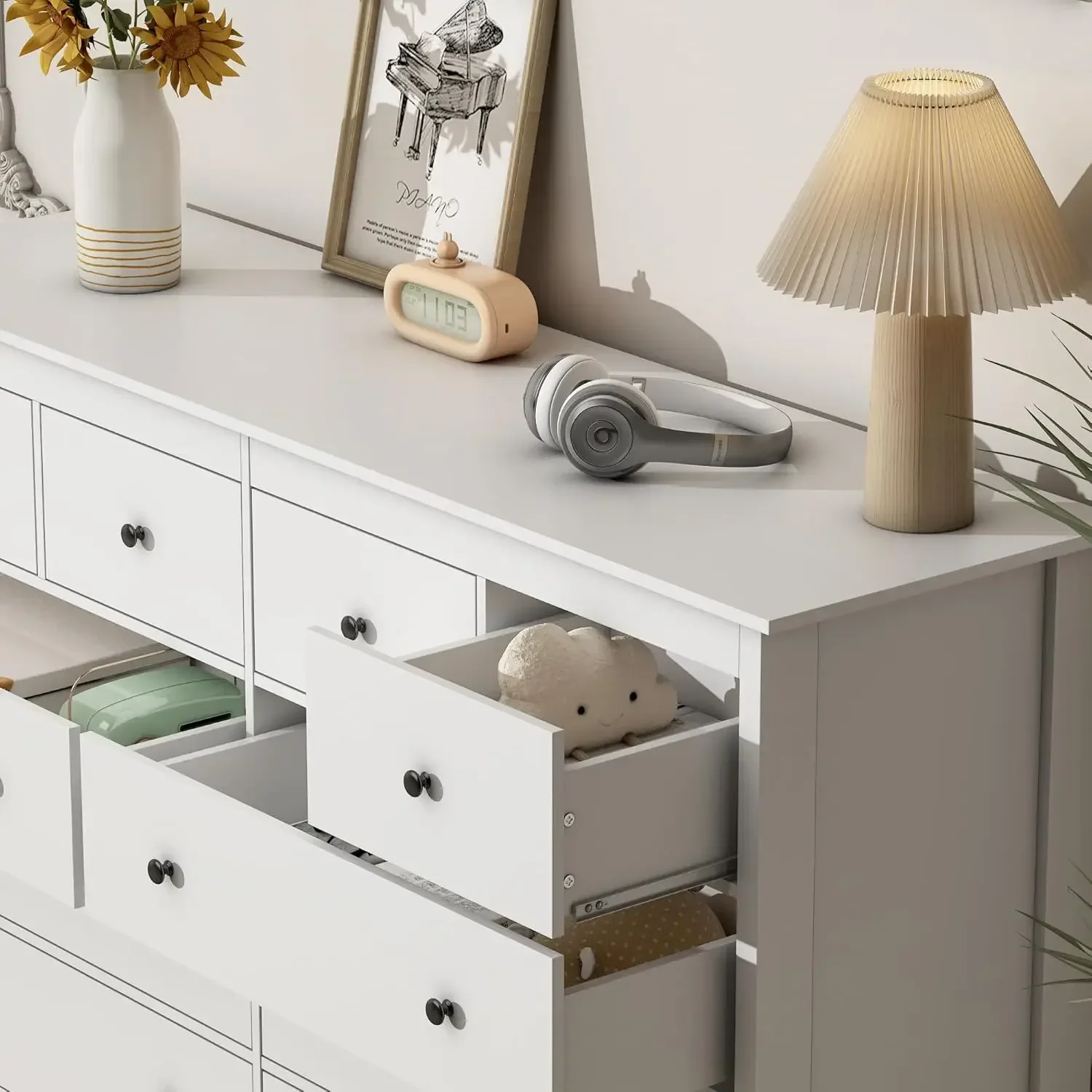 10 Drawer Dresser, 55" Modern White Dressers and Chests of Drawers