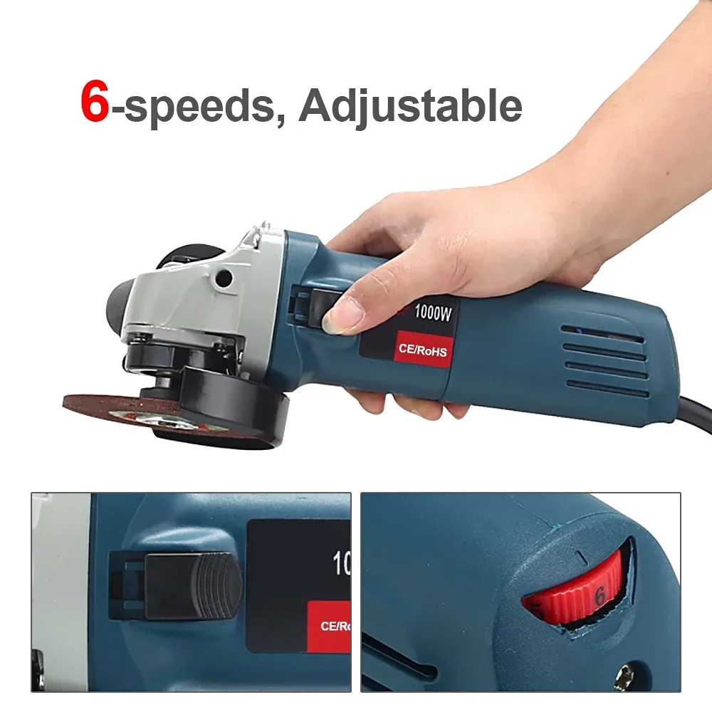 1000W Electric Angle Grinder Corded Grinding Machine 6 Speeds 100mm 125mm Electric Grinding Cutting Polishing Power Tool 220V EU