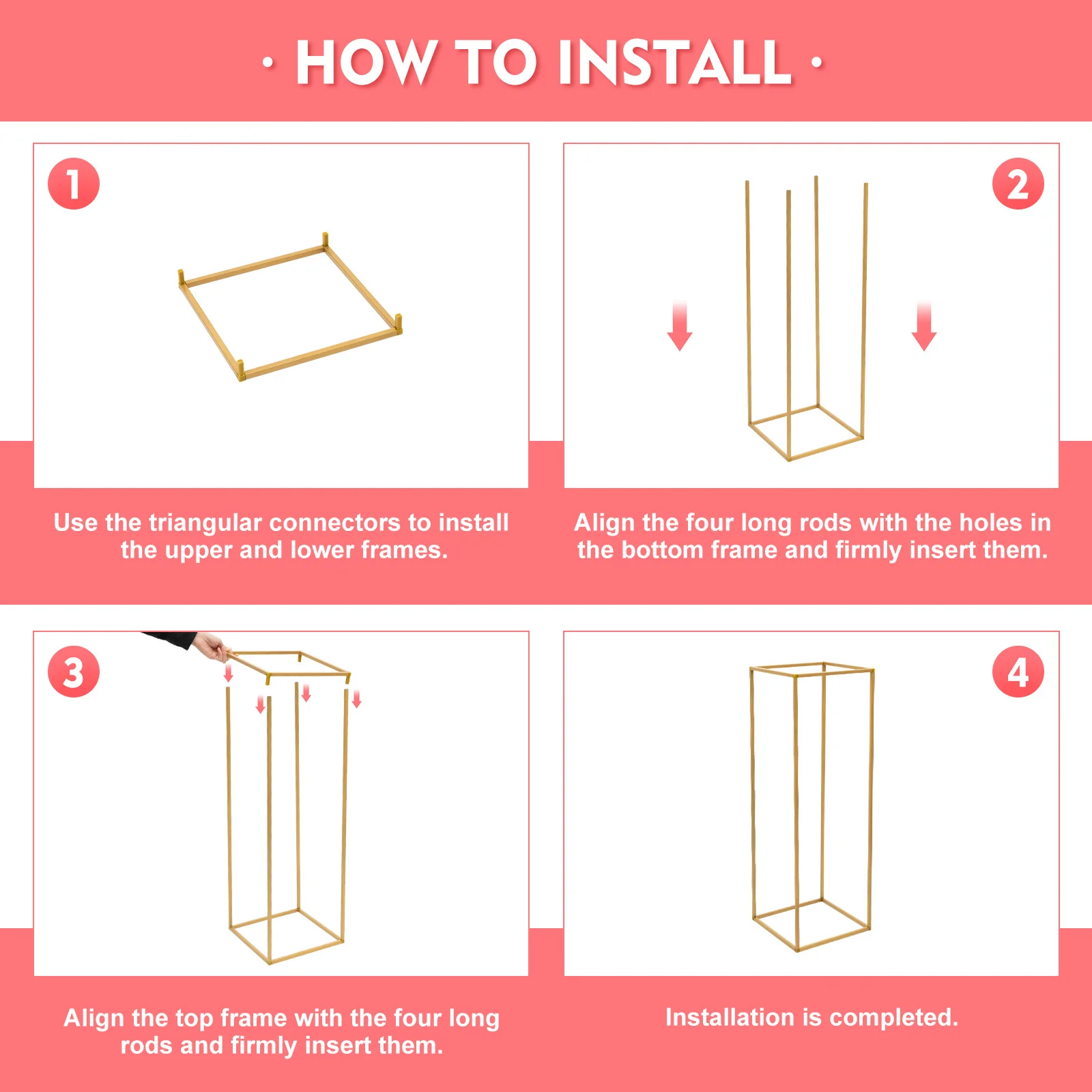 Simple Elegant Design: The rectangular geometric stand for centerpieces features a modern, sleek design with gold-tone metal for more occasions. As an accessory and display stand, it will easily create an elegant and romantic atmosphere!
