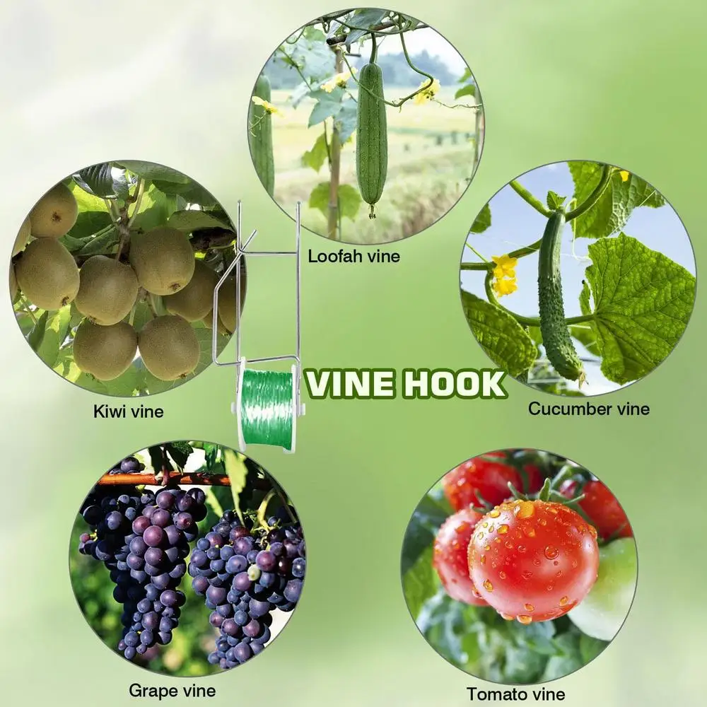 10pcs Planting Tomato Hooks Twine Roller Greenhouse Vegetable Support Clips Greenhouse Trellising Kit With 15m Rope