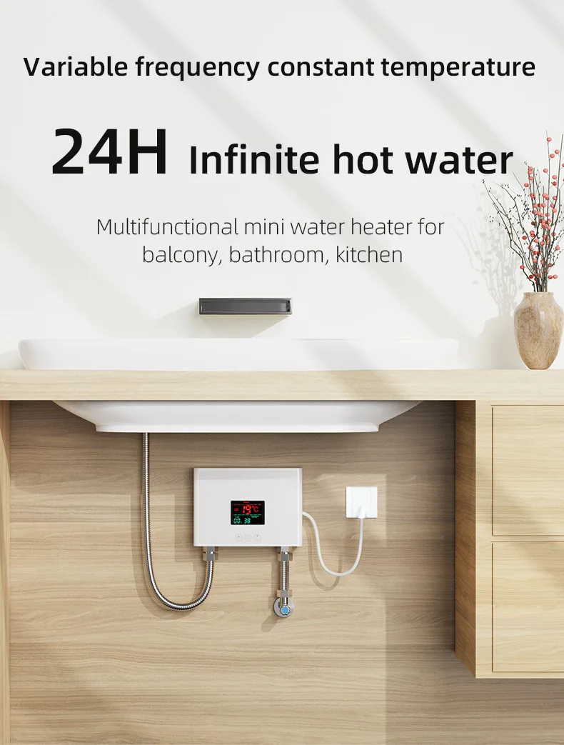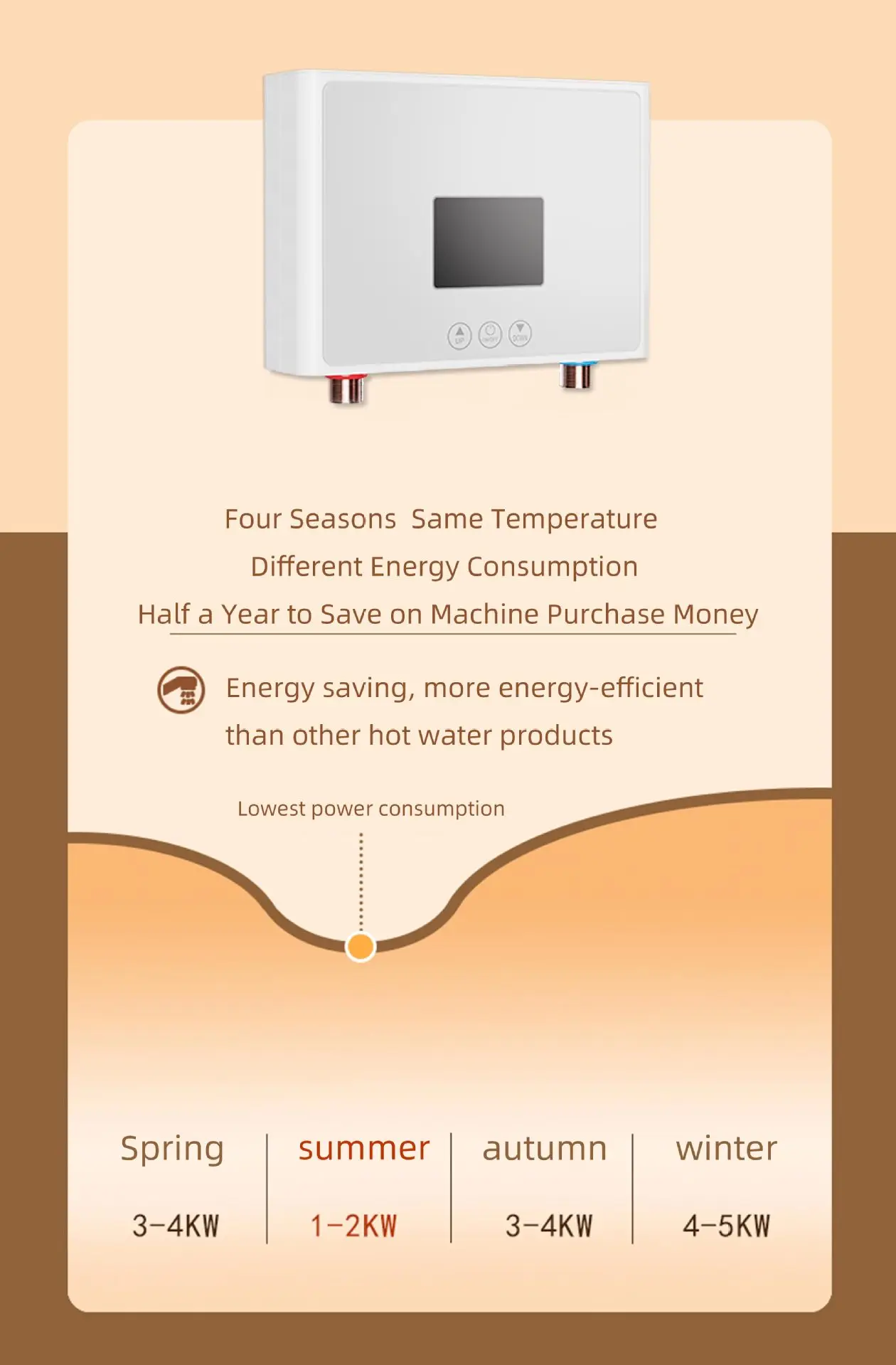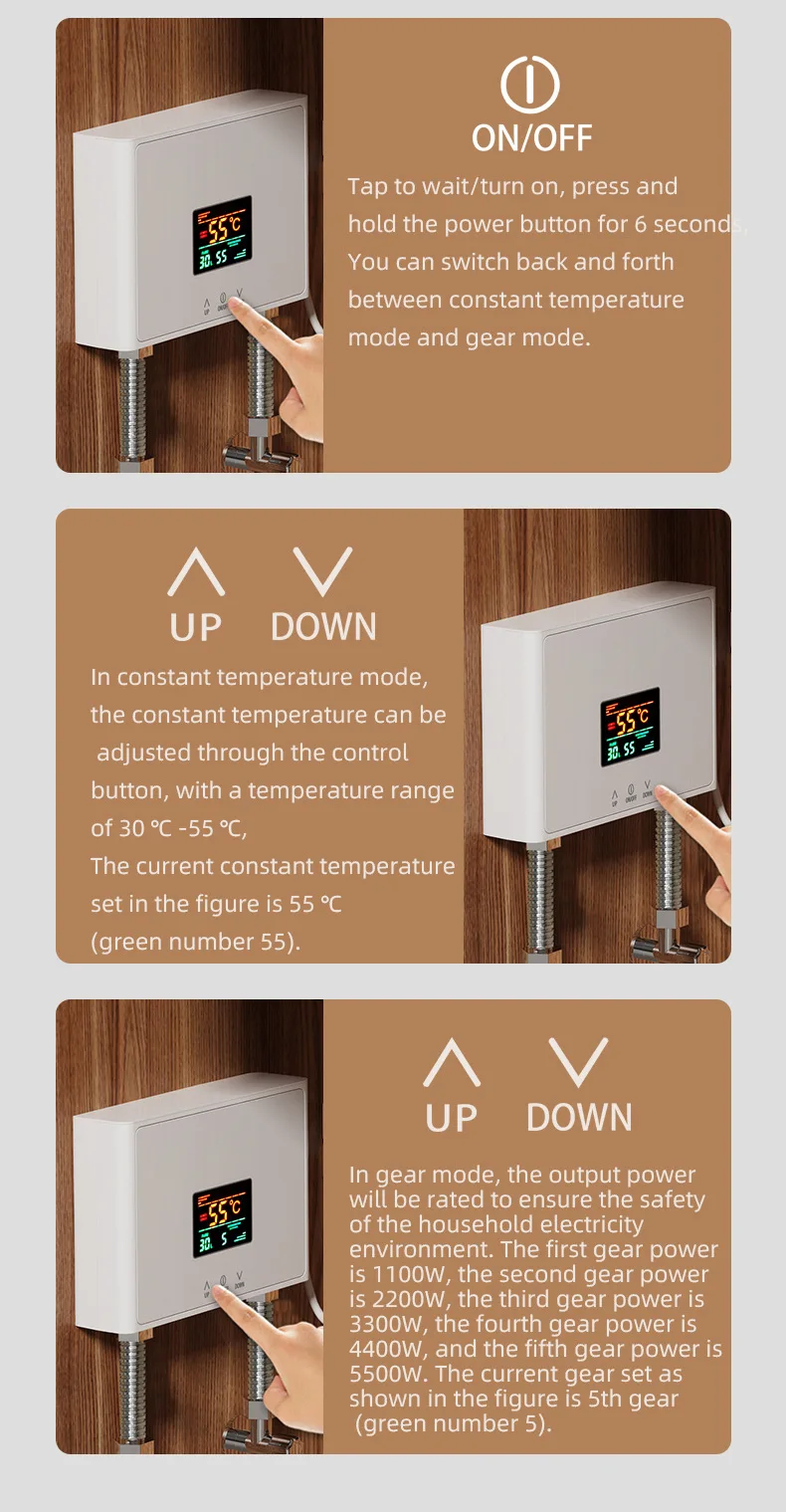 3.This mini water heater is easy to operate with an indicator light and LED temperature number.