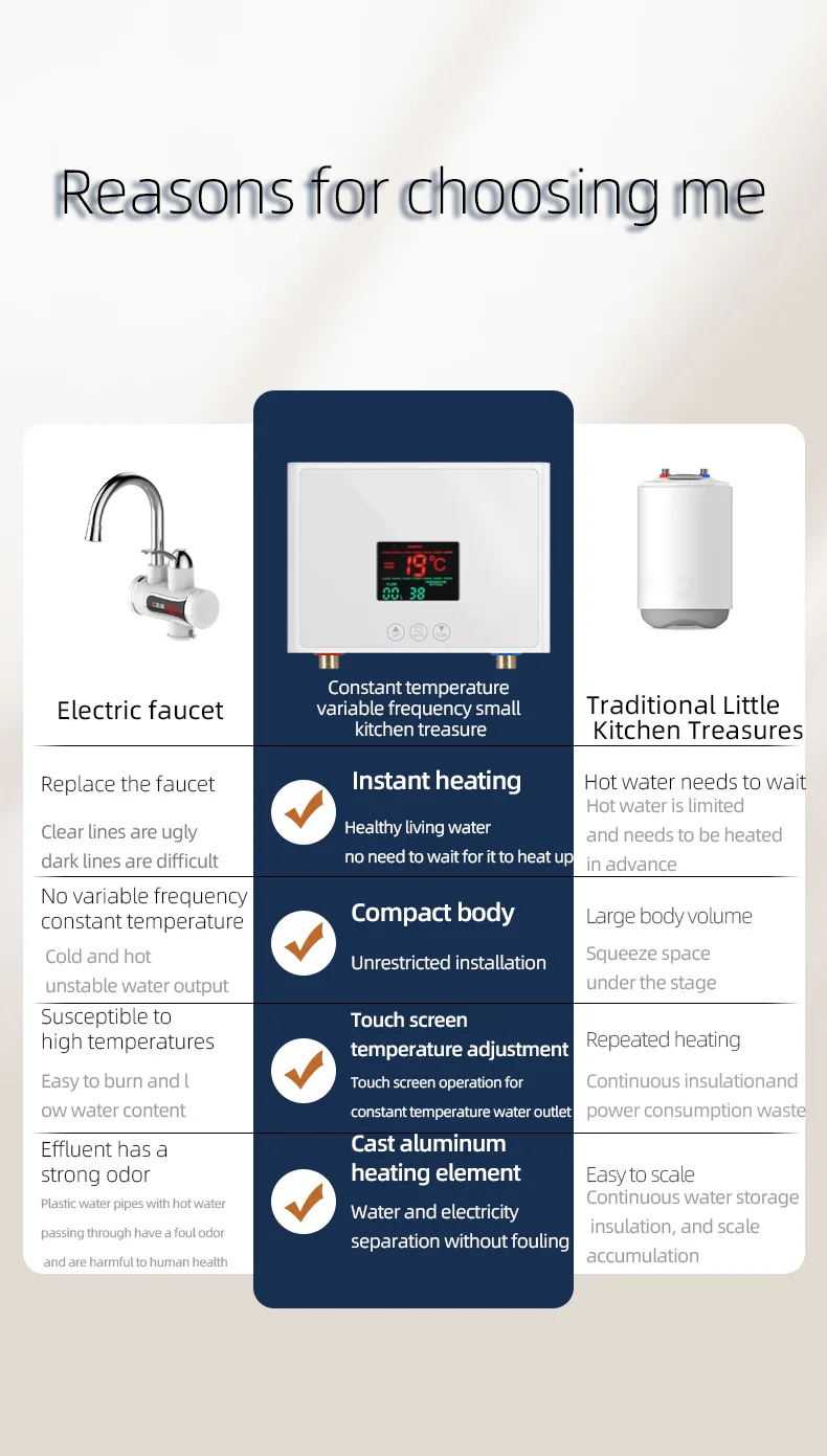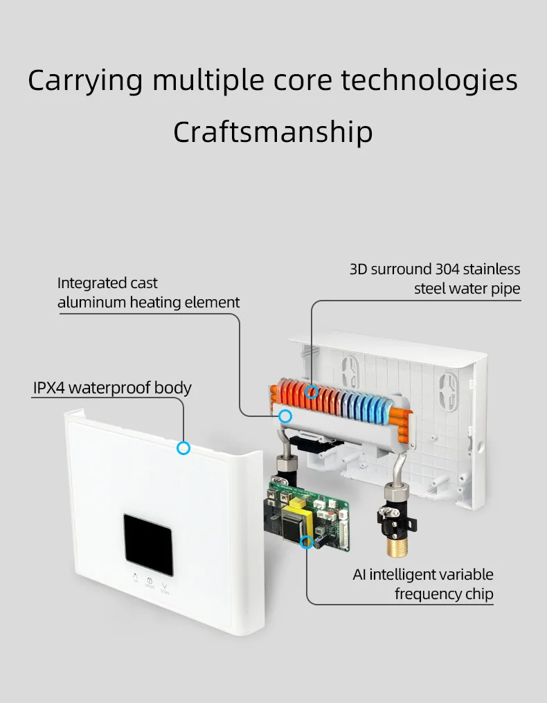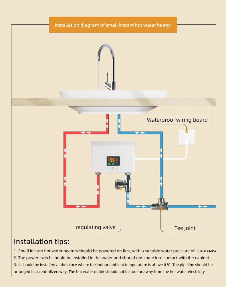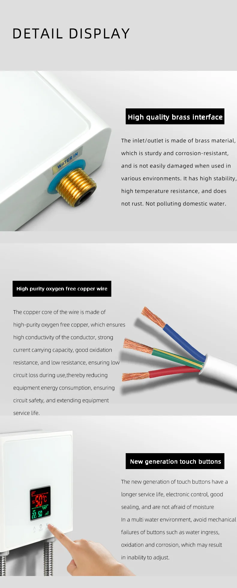 3.This mini water heater is easy to operate with an indicator light and LED temperature number.