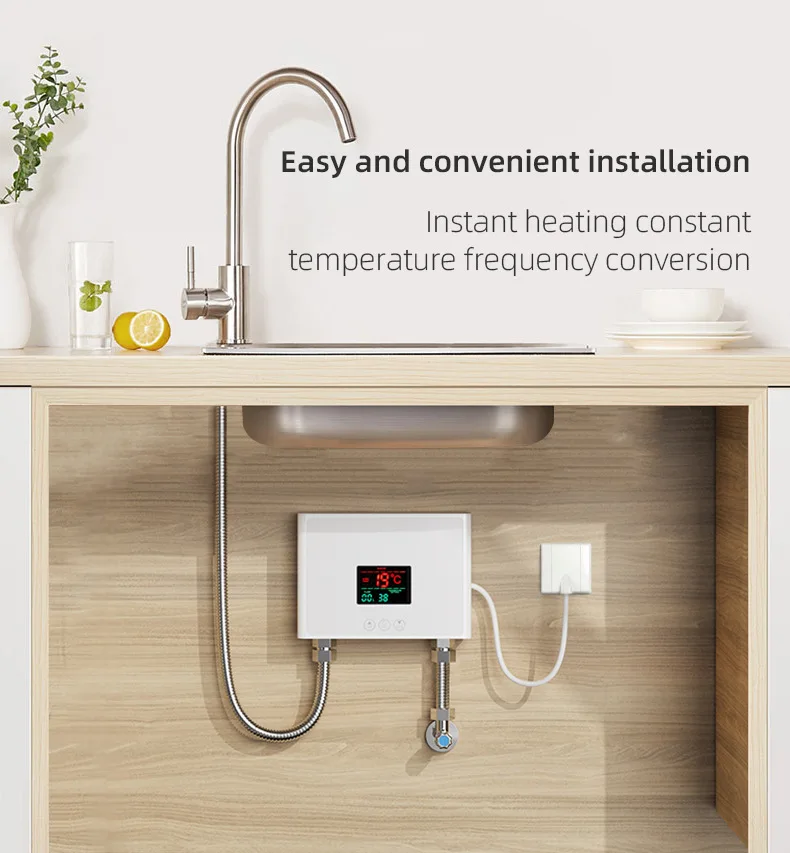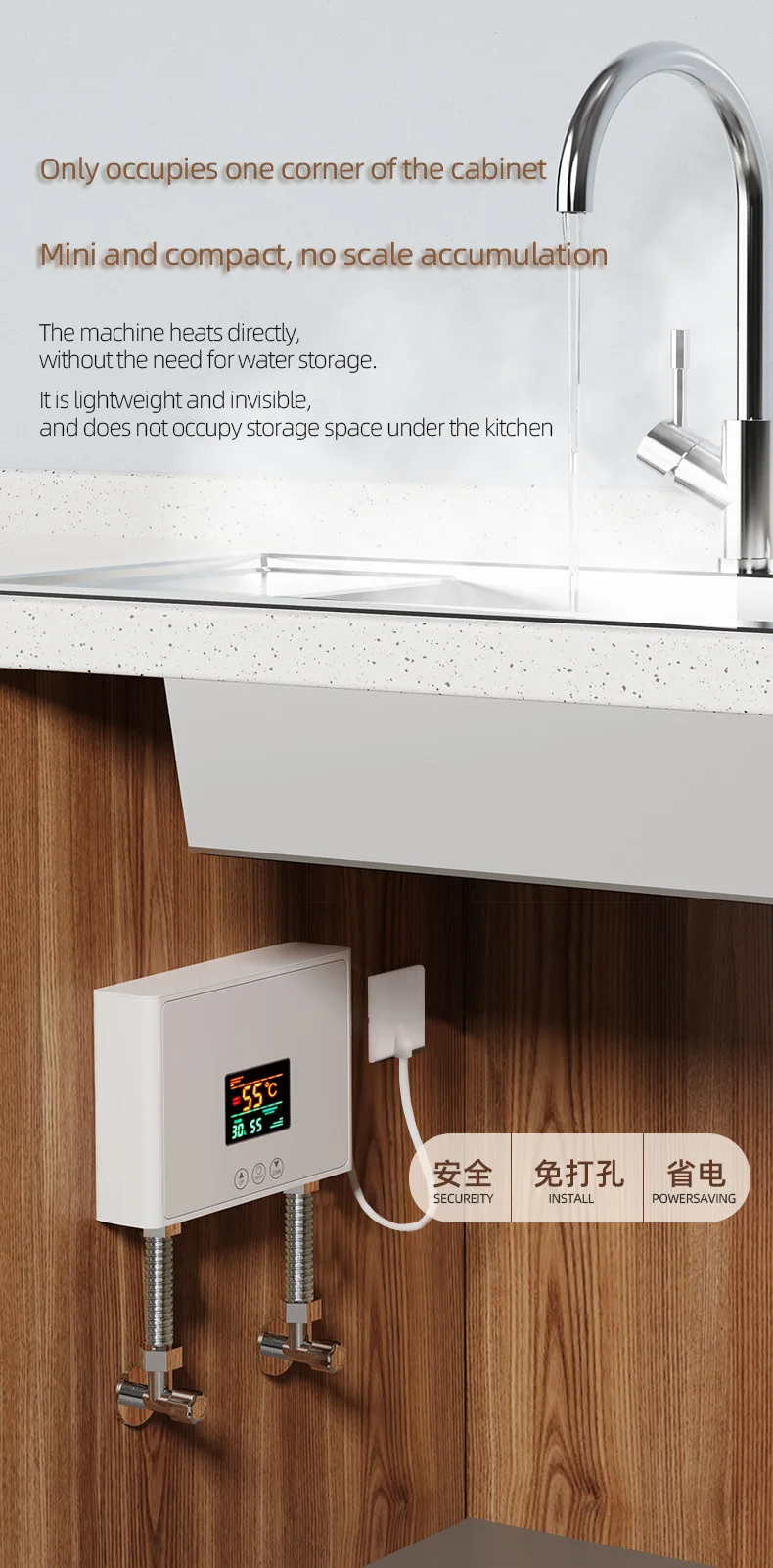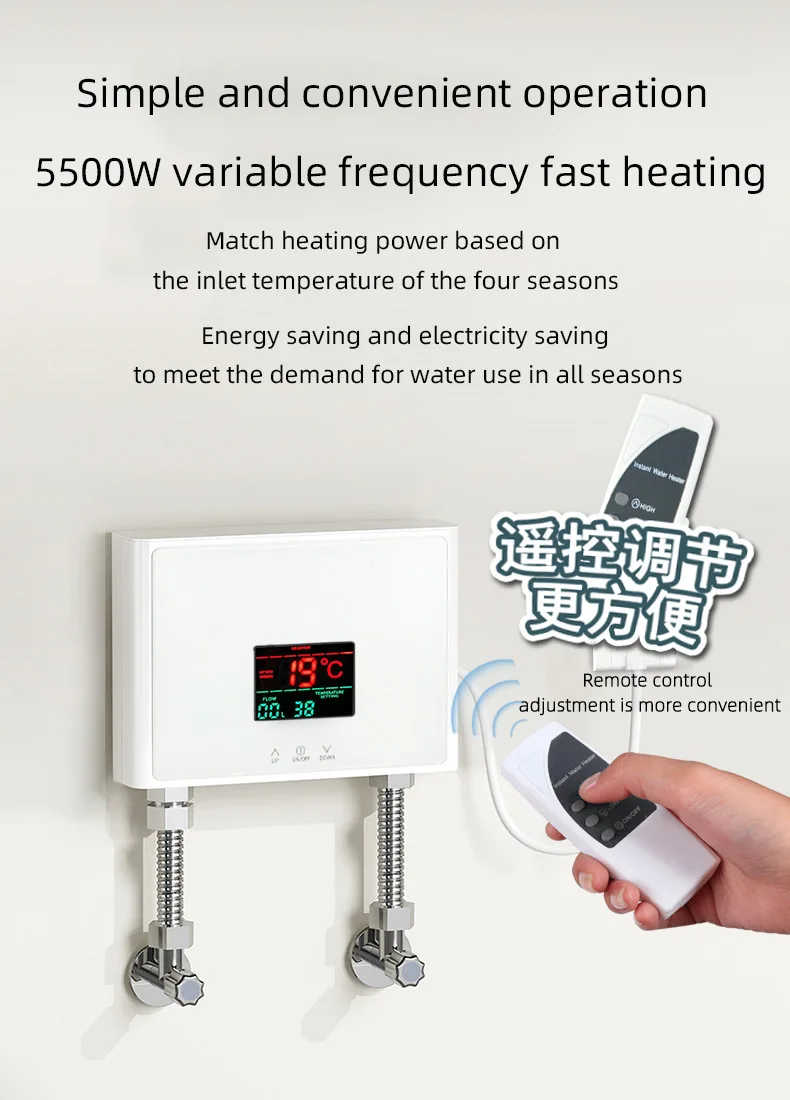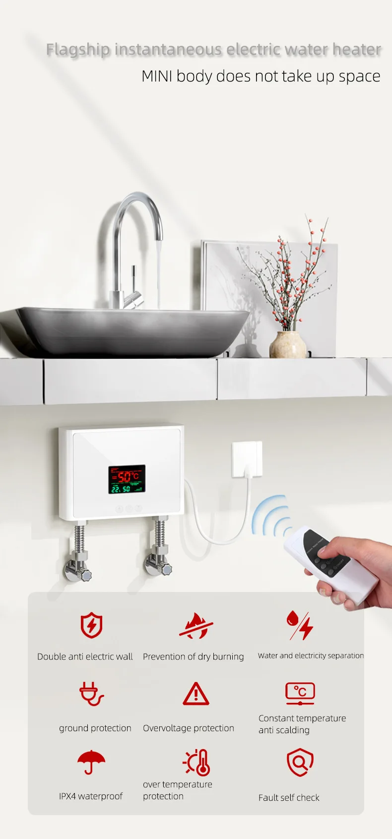 110V 220V Instant Water Heater Bathroom Kitchen Wall Mounted Electric Water Heater LCD Temperature Display with Remote Control