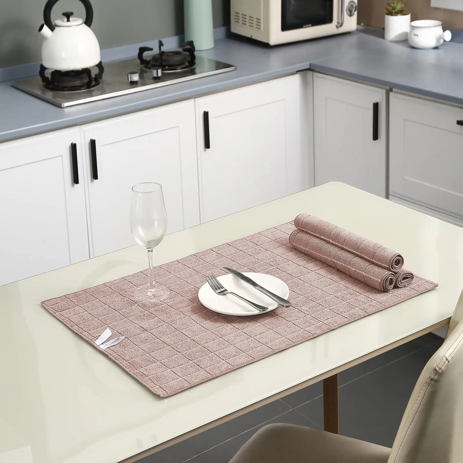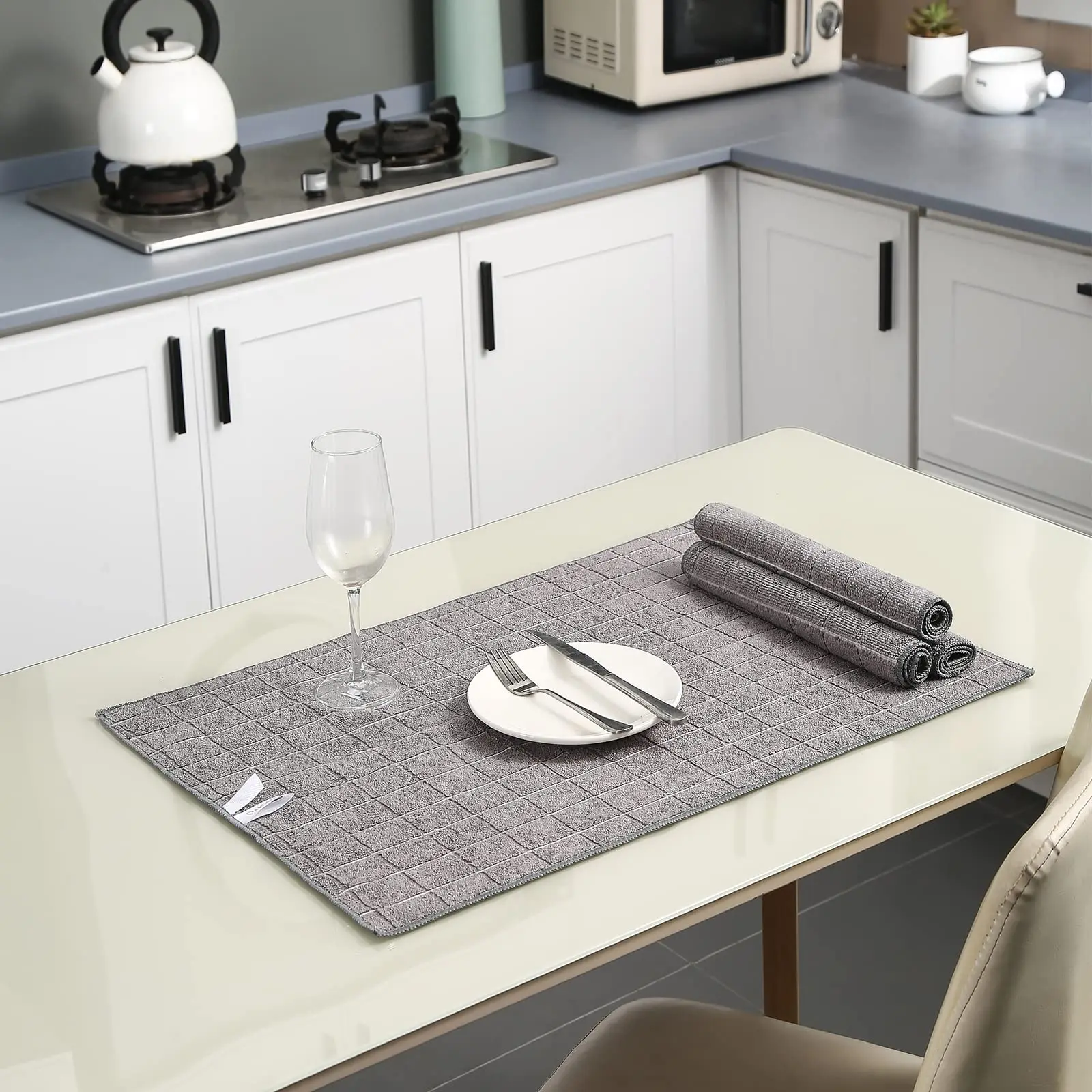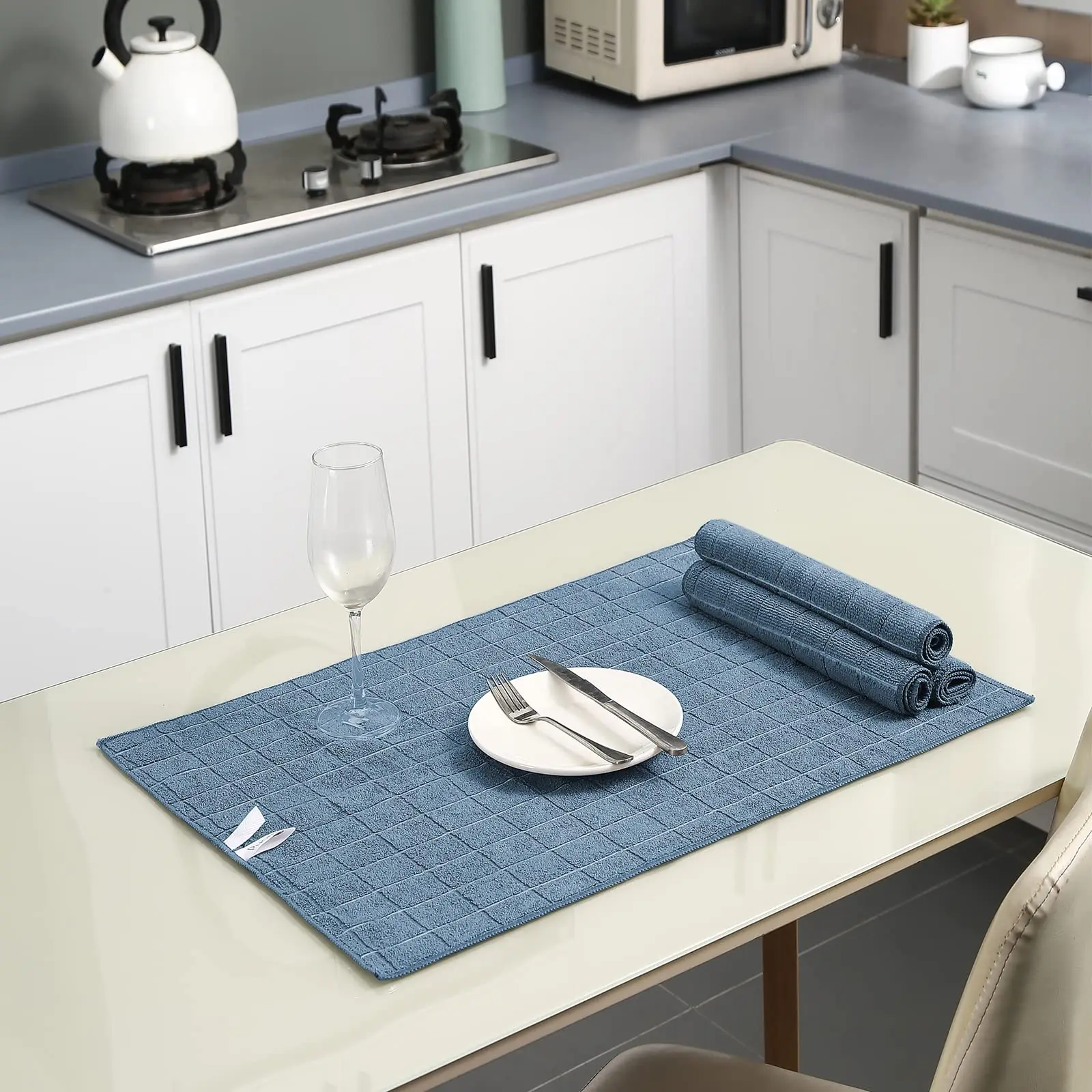 LINT FREE & SOFTNESS - These microfiber kitchen towels can soak up water from the counter-top and tables instantly and without lint or streaks left behind. The microfiber dish towel material feels pretty soft!