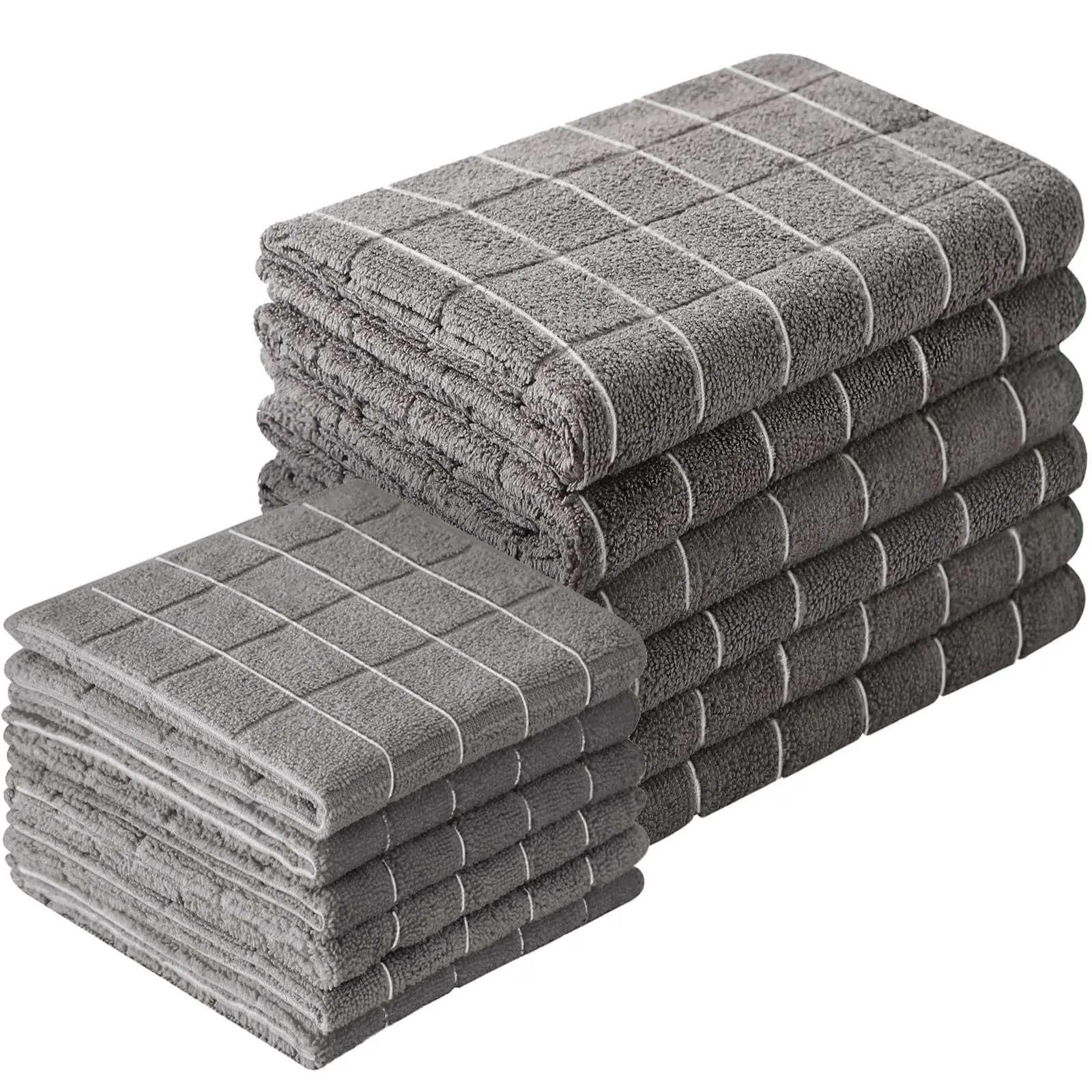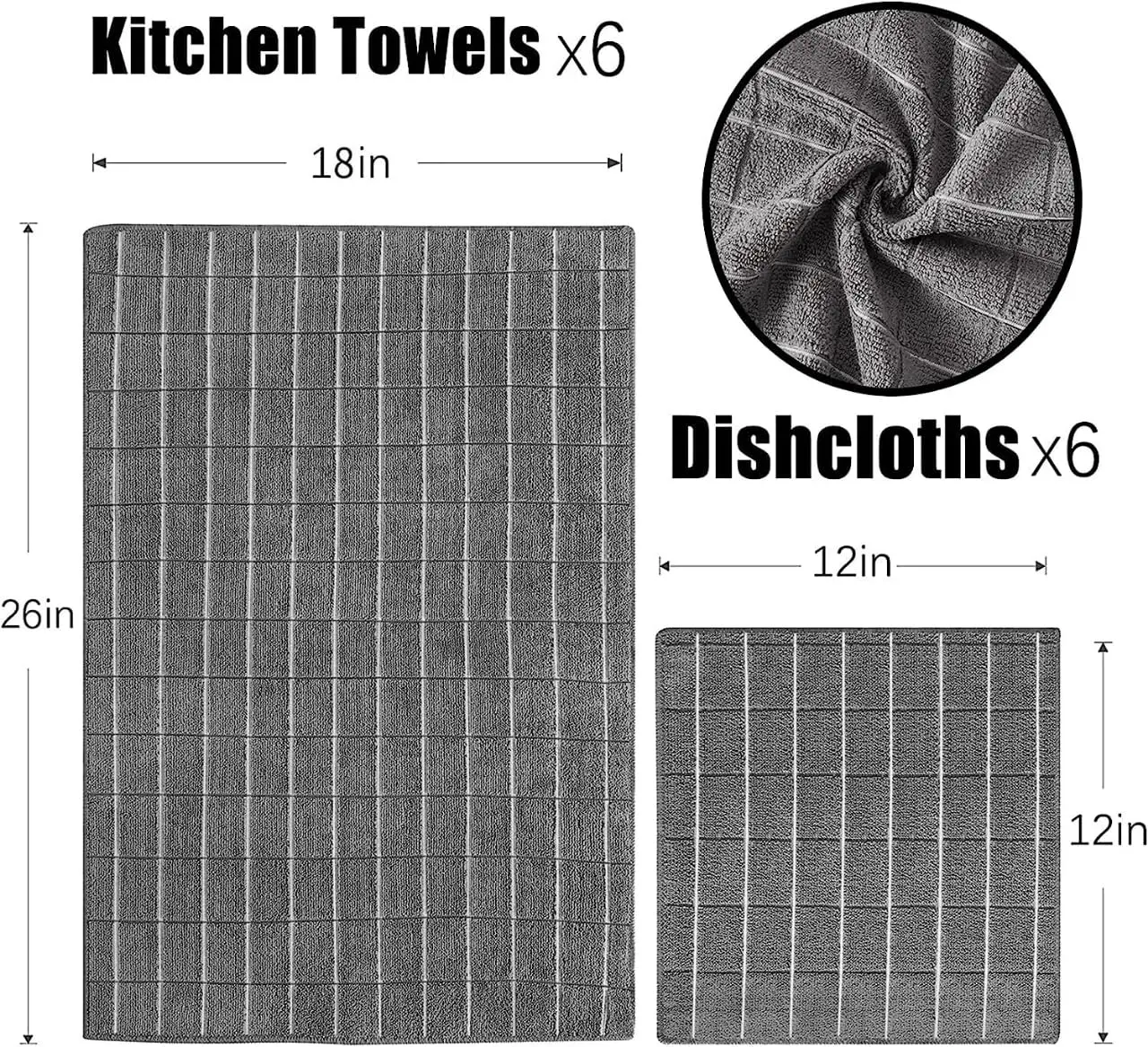 VALUE GIFT 12 PACK - Set includes 6pcs kitchen towels and 6pcs dishcloths. Kitchen towels are suitable for wiping pans, kitchen hobs and kitchen appliances. The dishcloths are perfect for drying dishes, cups, knives, forks and taps. Value for money!