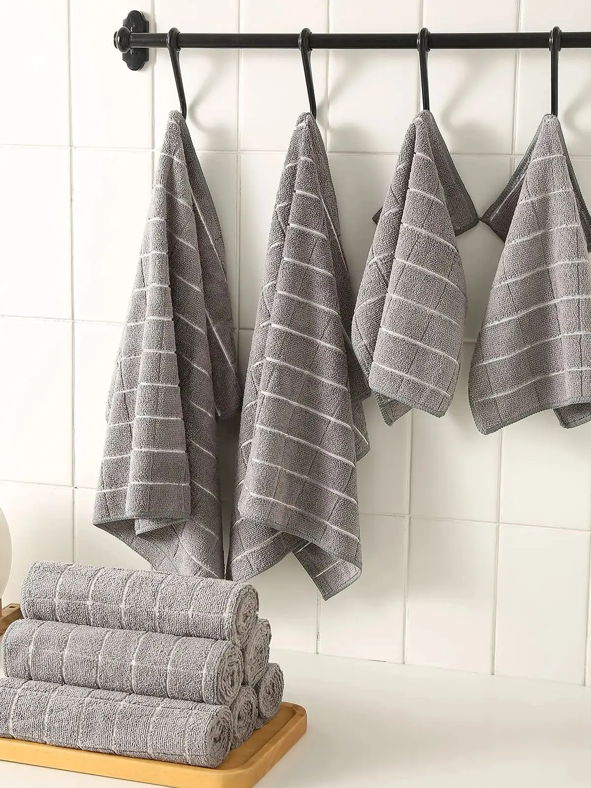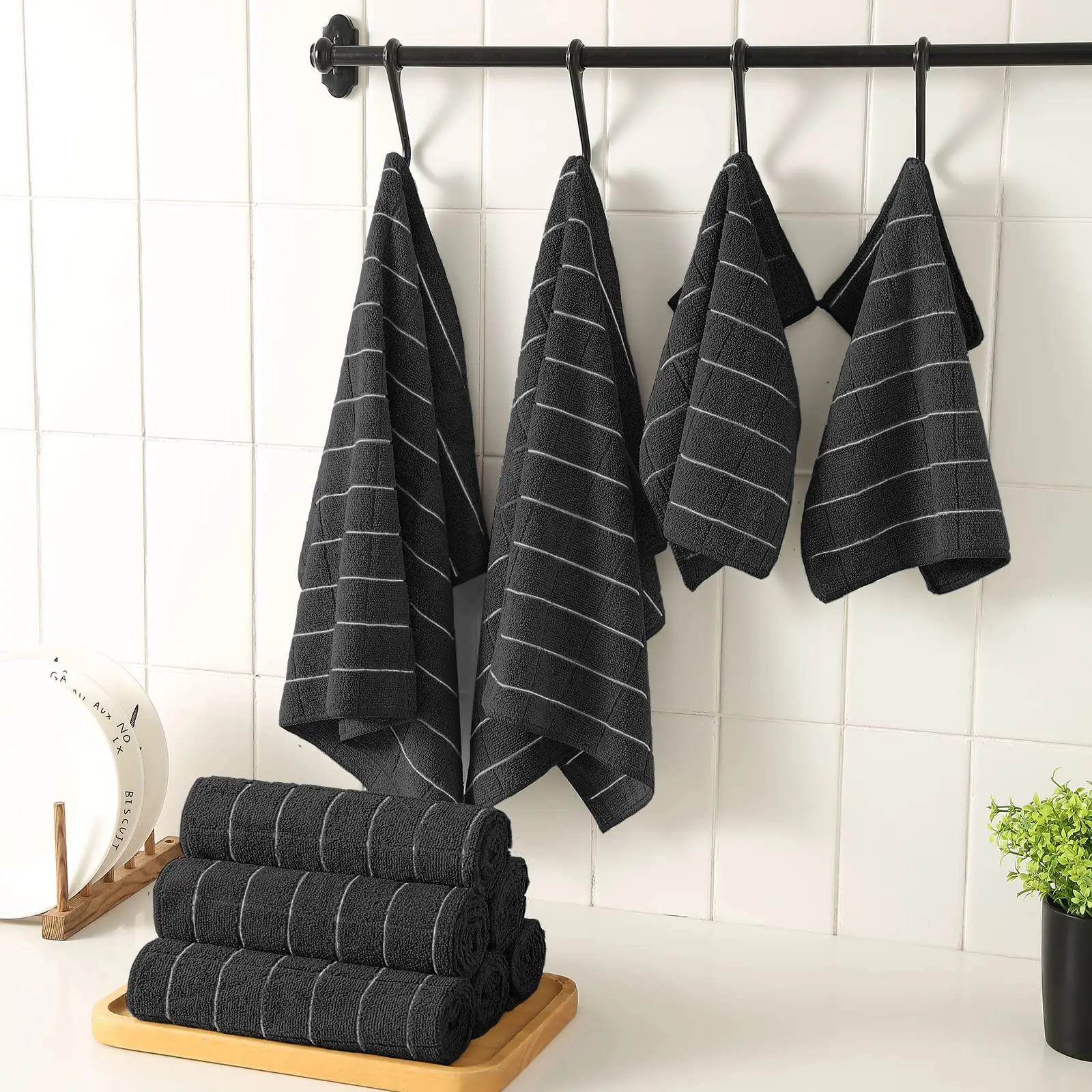THICK & DURABLE: Superior-quality, luxuriously soft, thick and plush. With excellent sewing process, the kitchen towel can always stay in a good shape after thrown into a washer. Color fading and shrink will not happen all the time even after tons of washing.