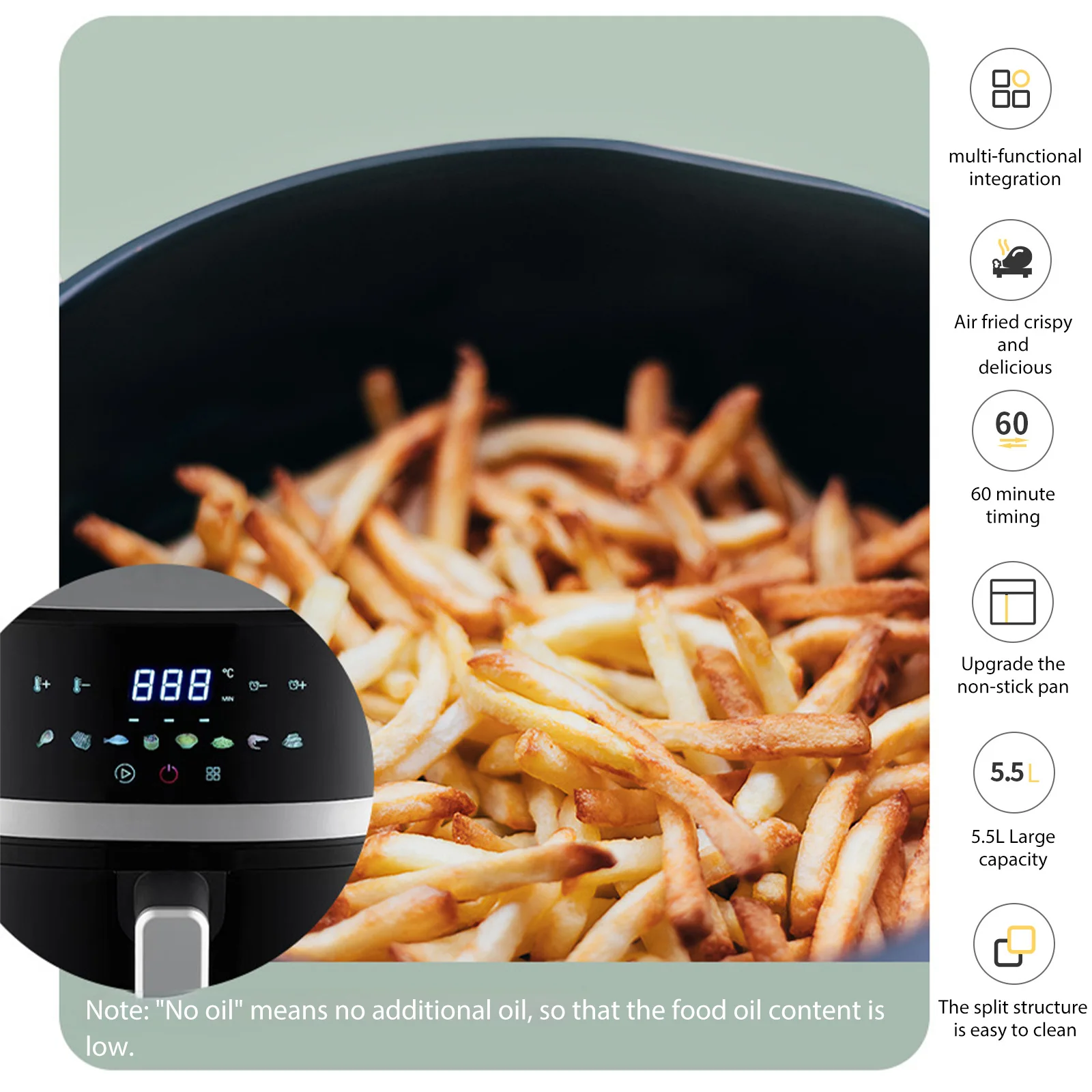3.5-litter large capacity, suitable for family use: This air fryer come with a spacious 5.5-liter frying basket. basket, with enough capacity for the thing family to use. Wheth it's dinner or a family gathering, the air fryer can help you make any dish you want