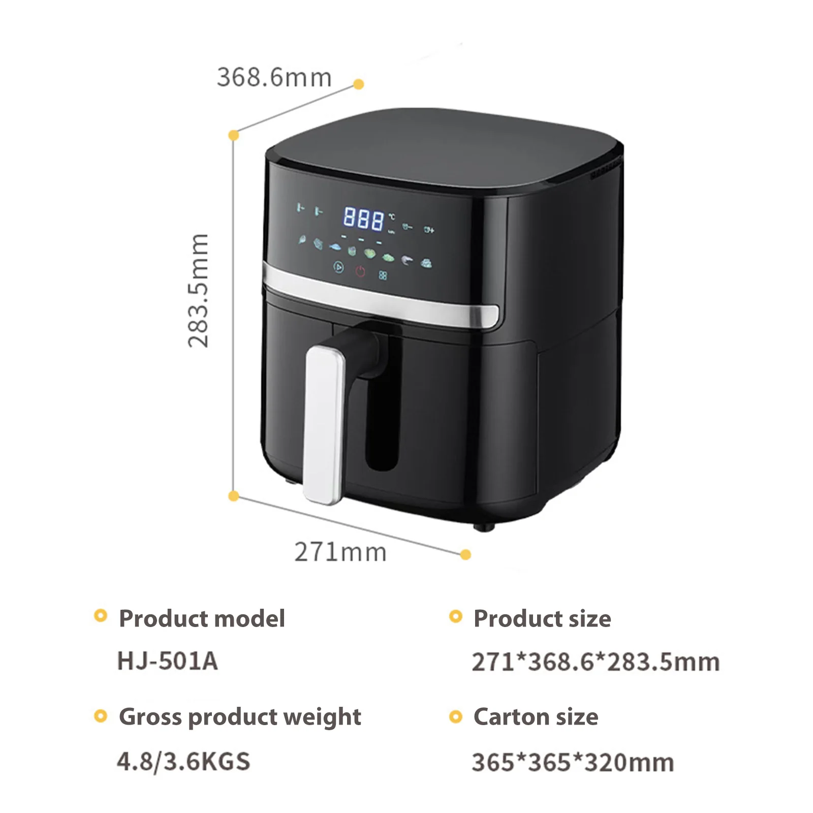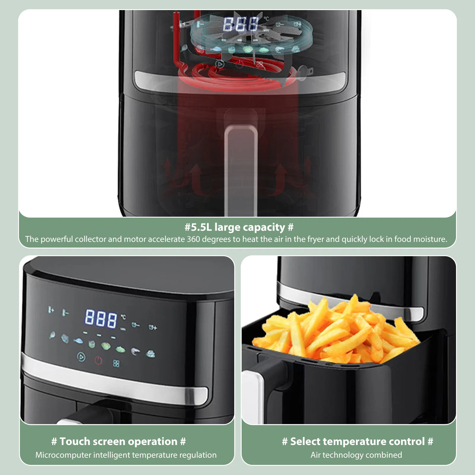 1400W 5L Air Fryer Stainless Steel Visible wide Capacity Electric Oven LED Display Touch set Multifunctional Electric Frye