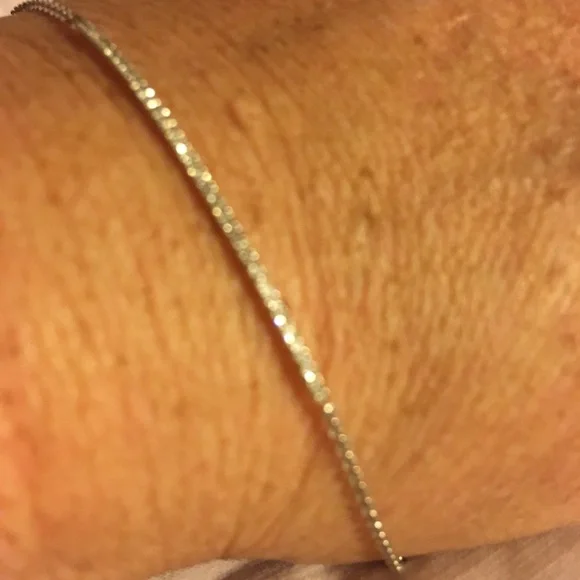 A lustrous precious metal bar is adorned with pavé-set diamonds, creating a beautifully simple bracelet that is perfect for everyday wear. Lobster ClawCenter Gemstone: Diamond Set in 14k gold, this dainty bracelet features a diamond bar that curves across the top of the wrist and is attached to an adjustable 6.0-6.5-7.0” chain bracelet.