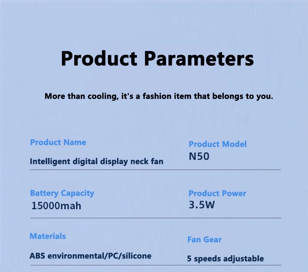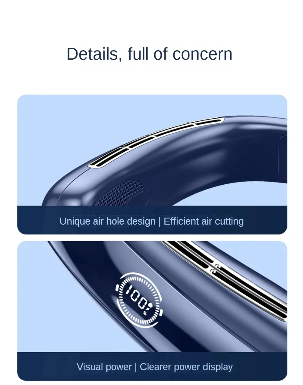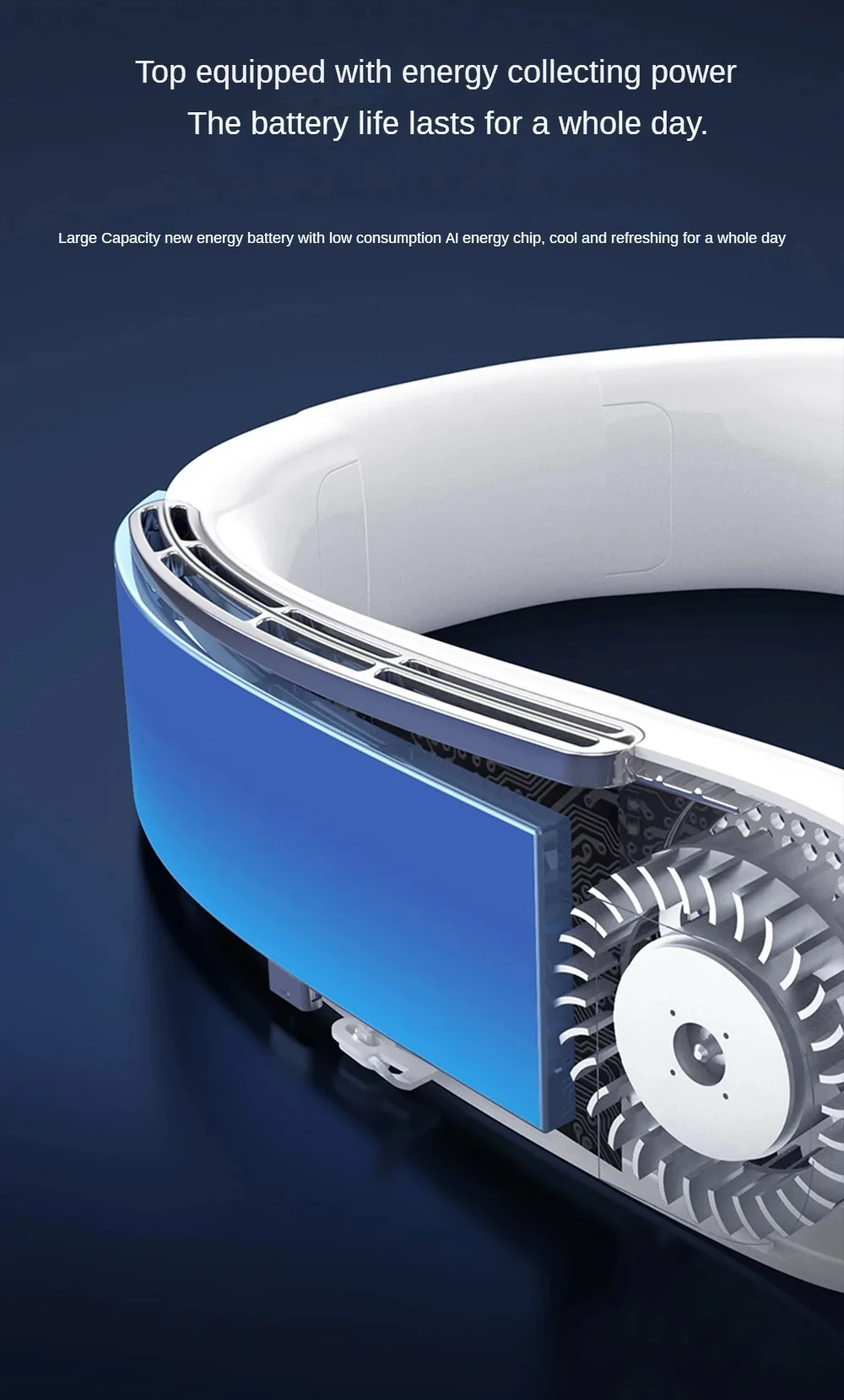15000mah Portable Neck Fan Smart Digital Display USB Rechargeable Outd