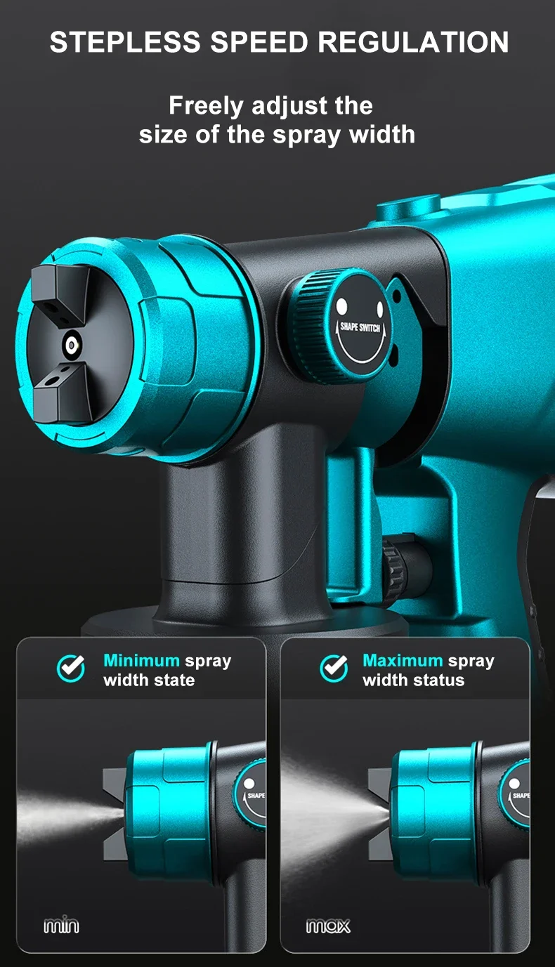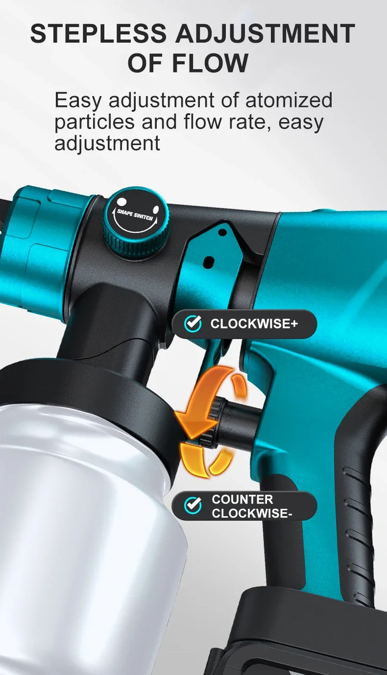 【Portable & Wide Application】The cordless paint sprayer is designed to be 2.5lbs, lightweight and portable, you can take it anywhere. Thus, the portable paint sprayer allows you to spray a various projects such as coating doors, windows, walls, fences, decking, ceilings, floors, cabinets, home furniture and other objects.