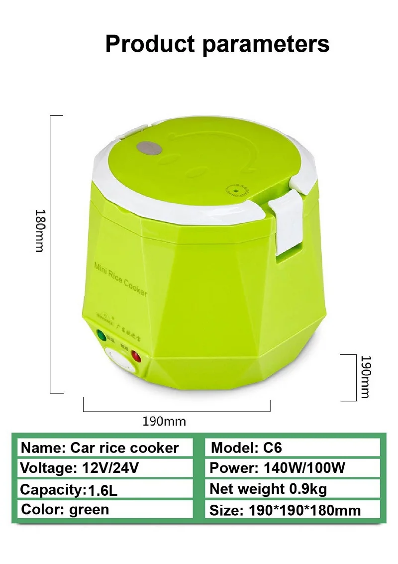 1.6L Mini Rice Cooker Heating Lunch Box Portable Constant Temperature Food Steamer Multifunction Pot For Car Truck 12/24V