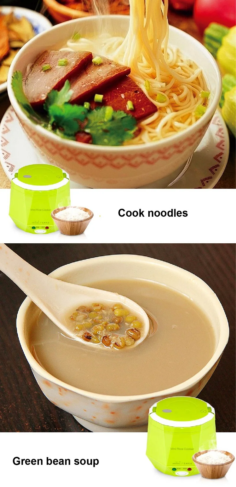 It is available for you to cook rice, porridge, nutritious eggs, and warm dishes in one time.