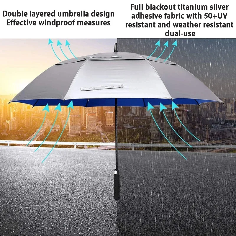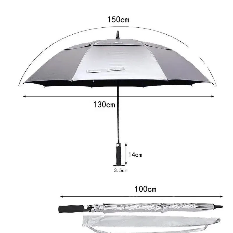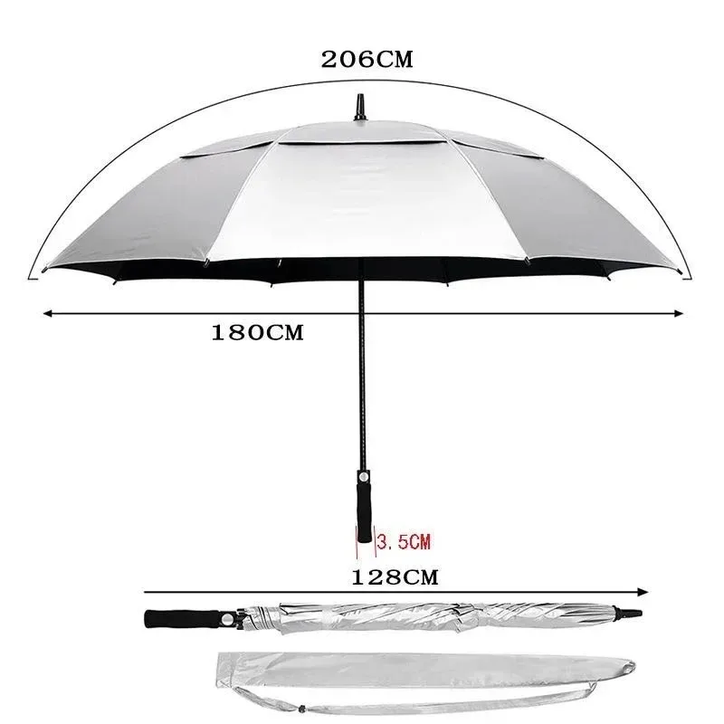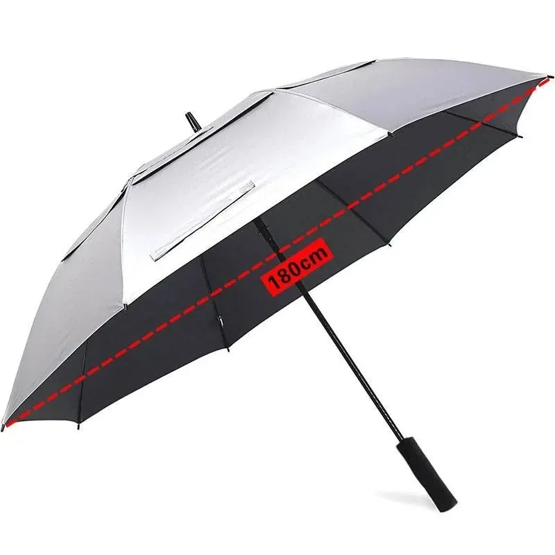 180CM Big Size Long Handle Umbrella Double-deck Large Rain Umbrellas Luxury Silver Dual Use Sunscreen Windproof Rain Gear Gift