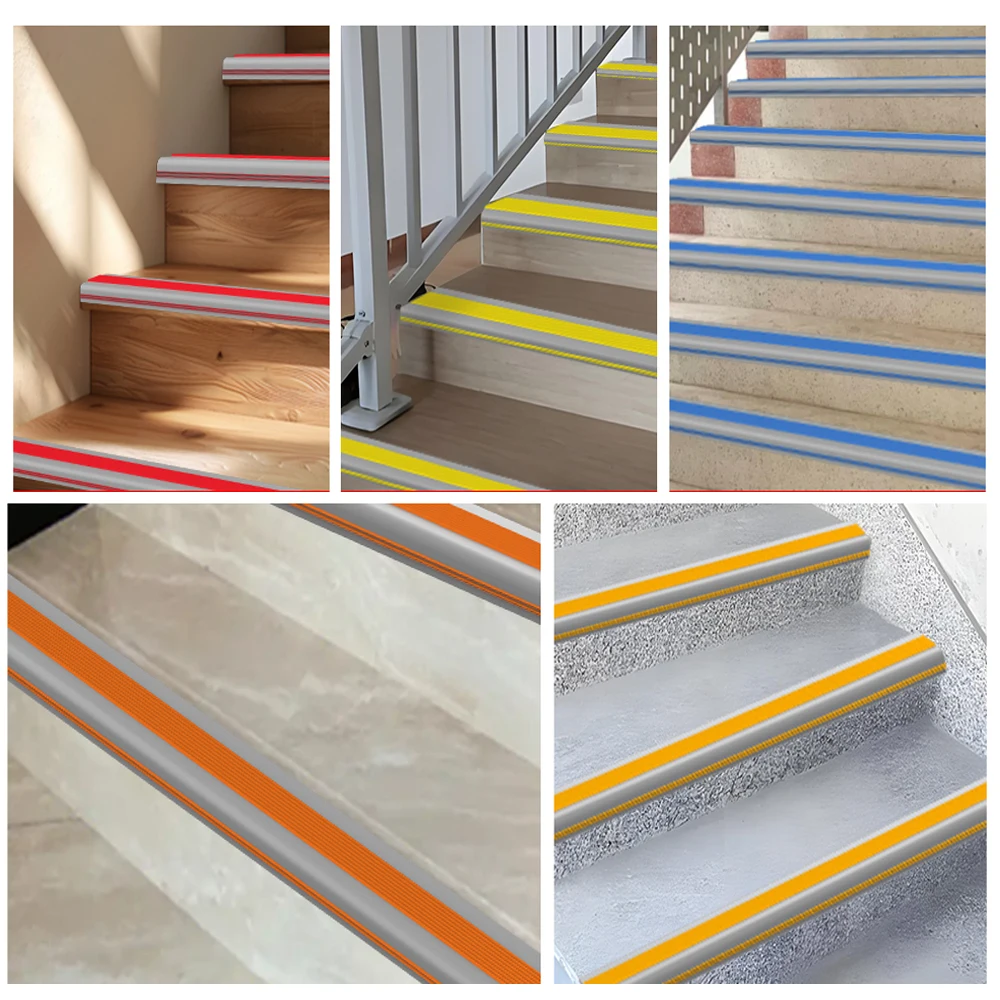 EQUIPPED WeITH STRONG ADHESIVE STRIPS: This anti-slip stair nosing coms with strong adhesive strips, so no tape or glue is needed for installation. Simply peel off the protective film and use it directly.