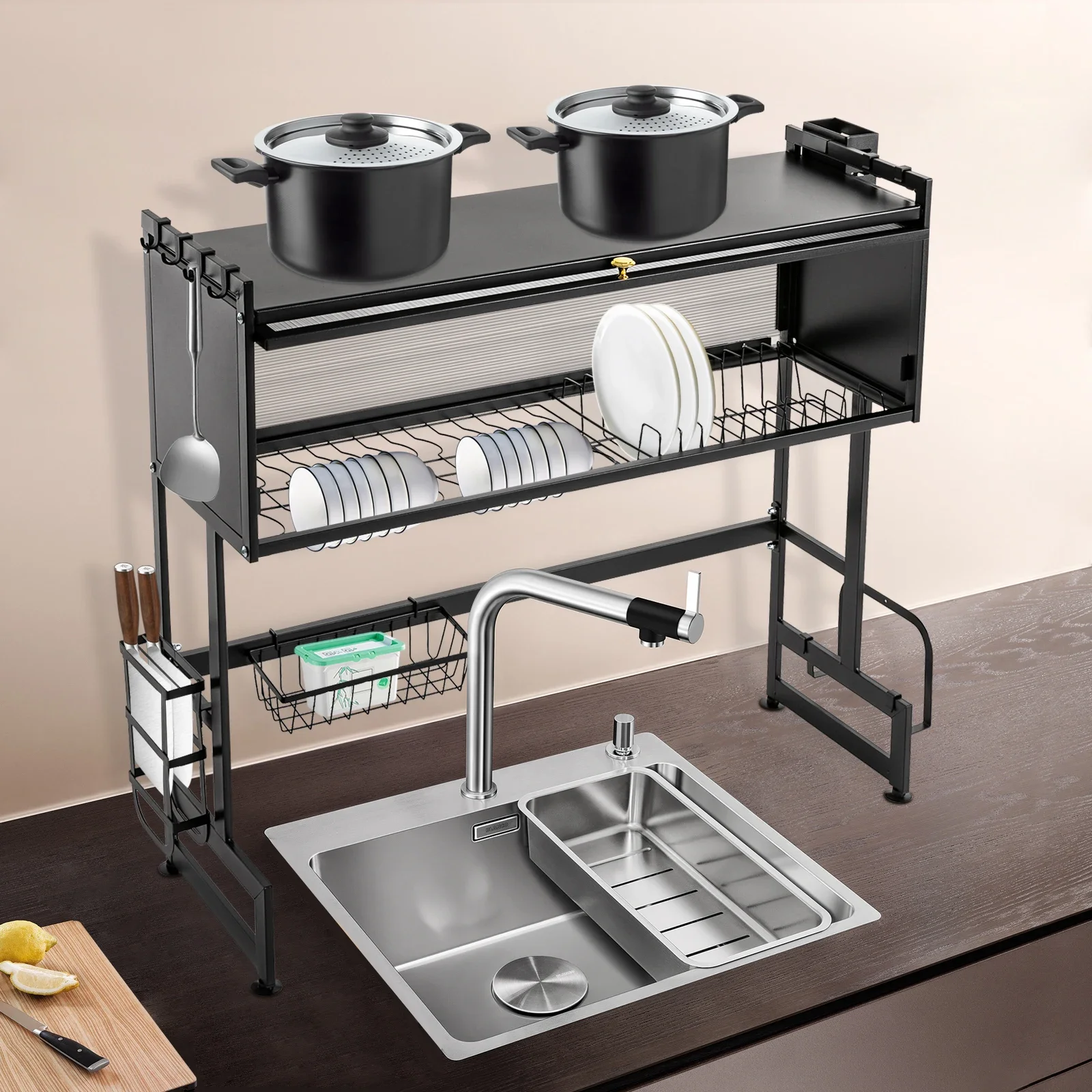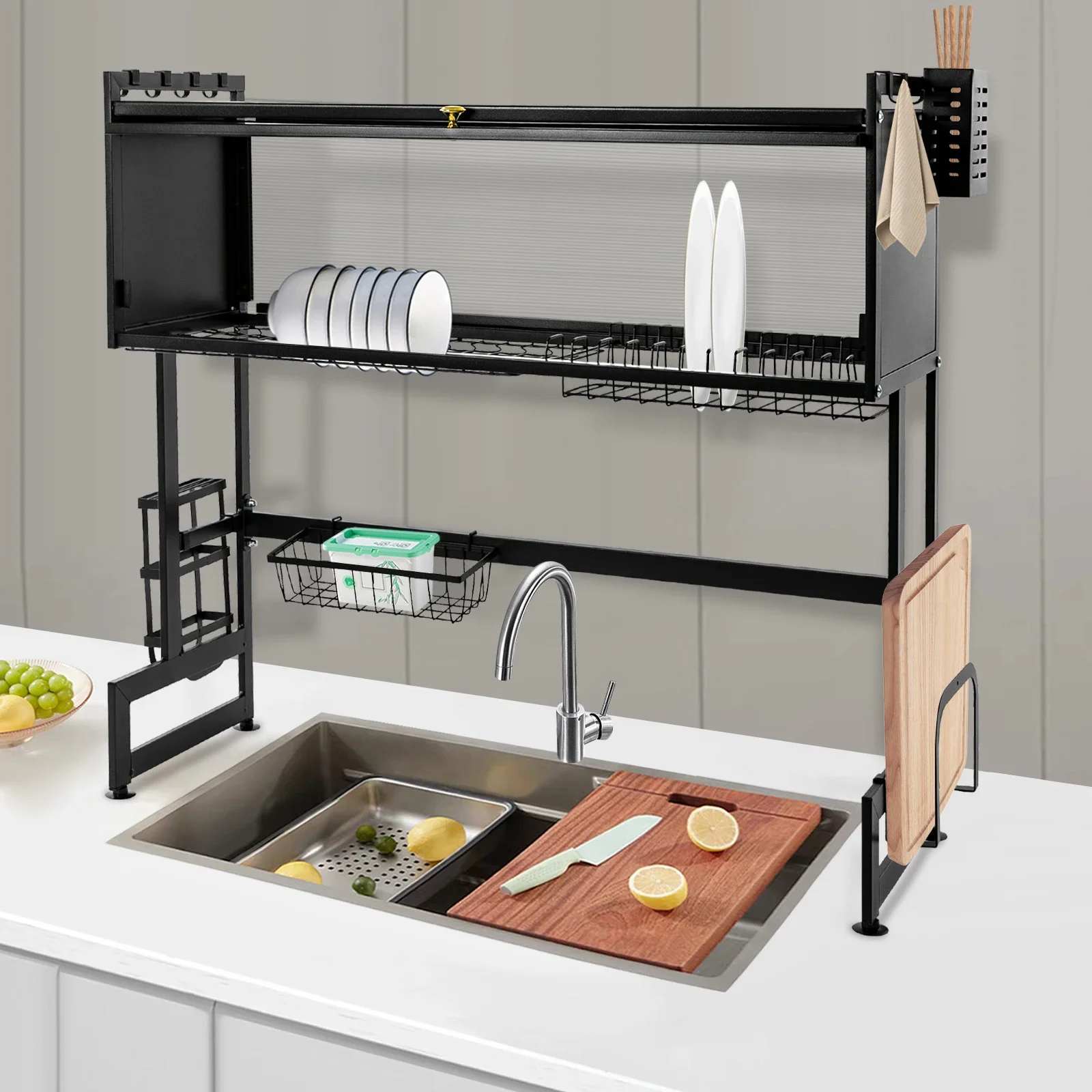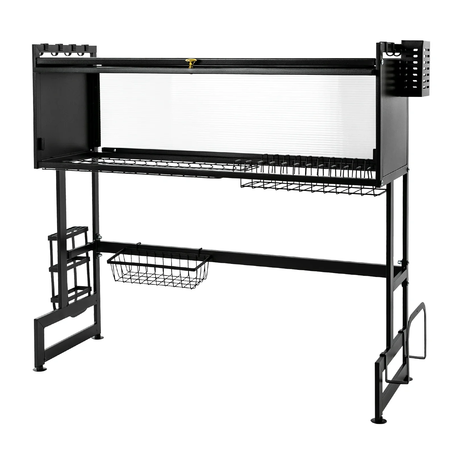 The dish drainer is made of selected carbon steel, with a unique baking process, which can provide great storage for dishes, safe and reliable. It has a good ventilation system and a wide capacity, which can achieve the ideal draining effect in a shorter time. Meanwhile, we have designed delicate and practical storage systems such as a knife holder, chopping board holder, and chopstick holder for you, which can effectively organize your kitchen space.