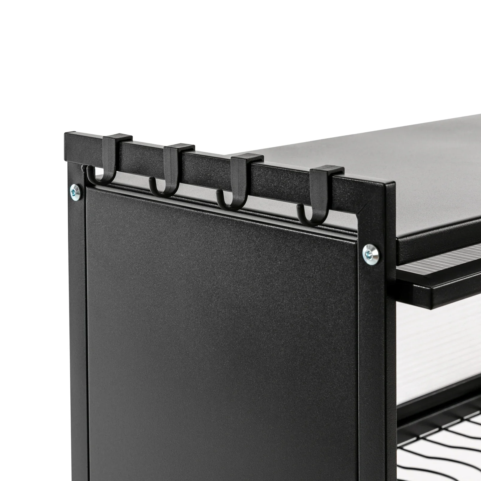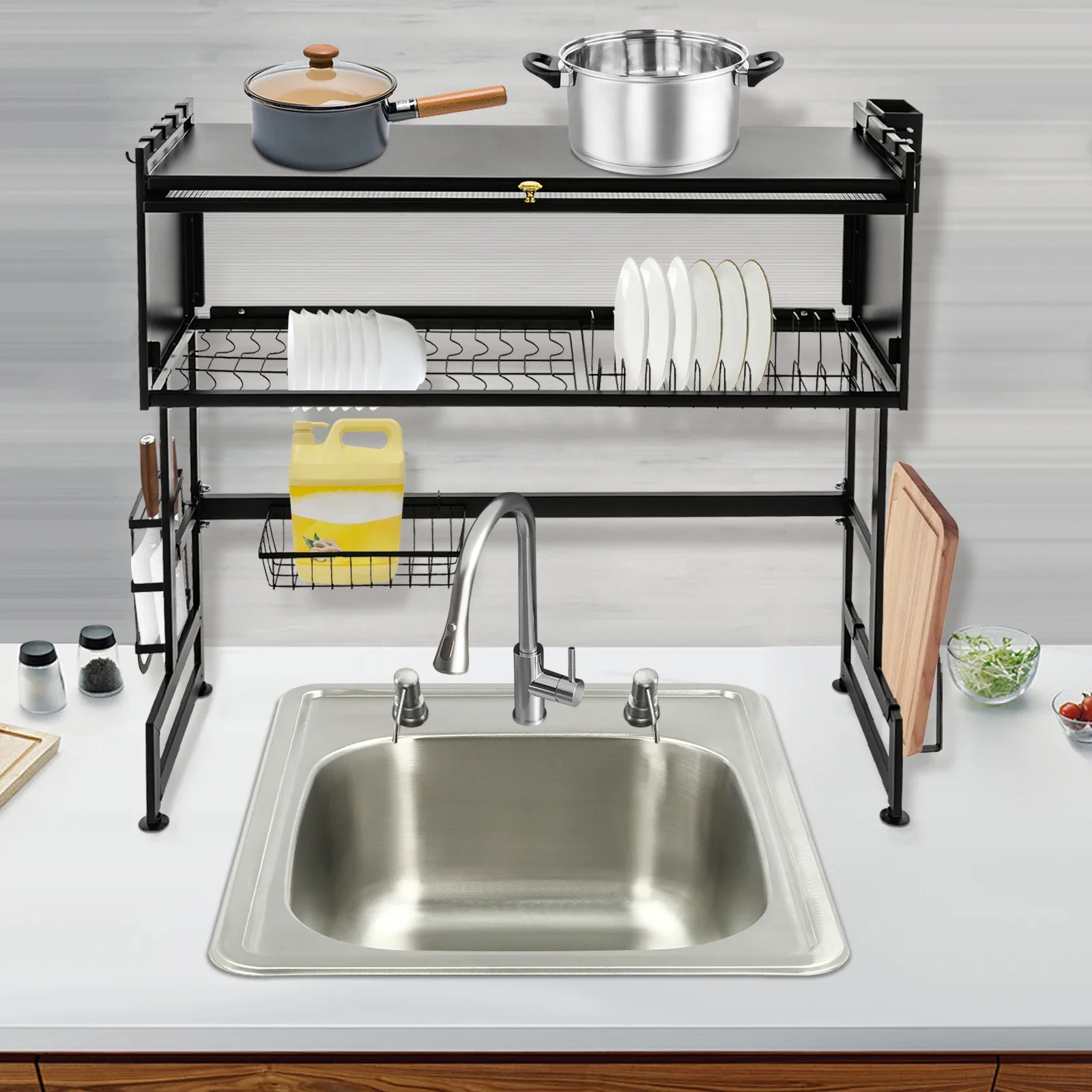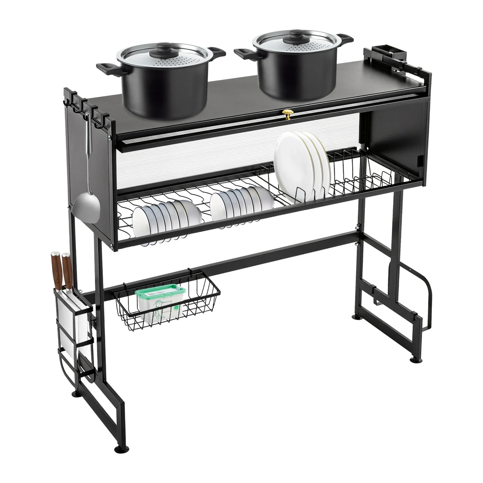 The dish drainer is made of selected carbon steel, with a unique baking process, which can provide great storage for dishes, safe and reliable. It has a good ventilation system and a wide capacity, which can achieve the ideal draining effect in a shorter time. Meanwhile, we have designed delicate and practical storage systems such as a knife holder, chopping board holder, and chopstick holder for you, which can effectively organize your kitchen space.