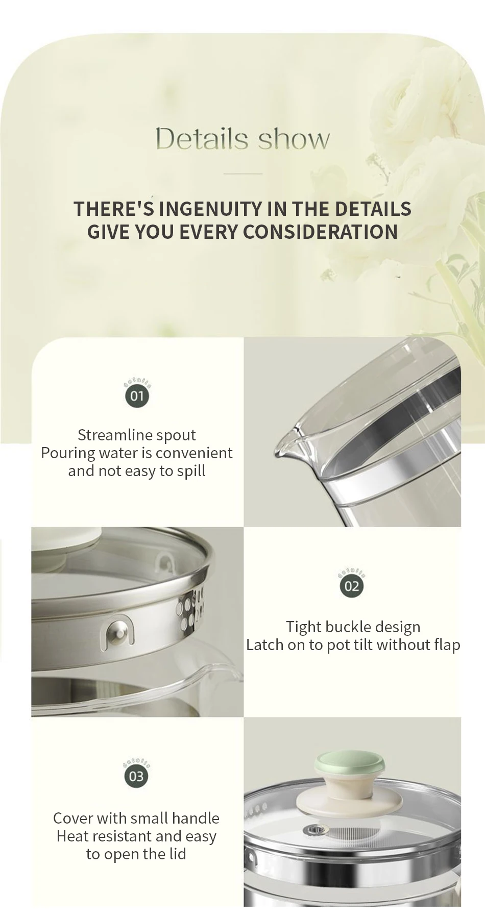 2025 New Health Pot Household Multi functional Electric Water Pot Boiling Water Flower Tea Pot Office Tea Cooking Small Set