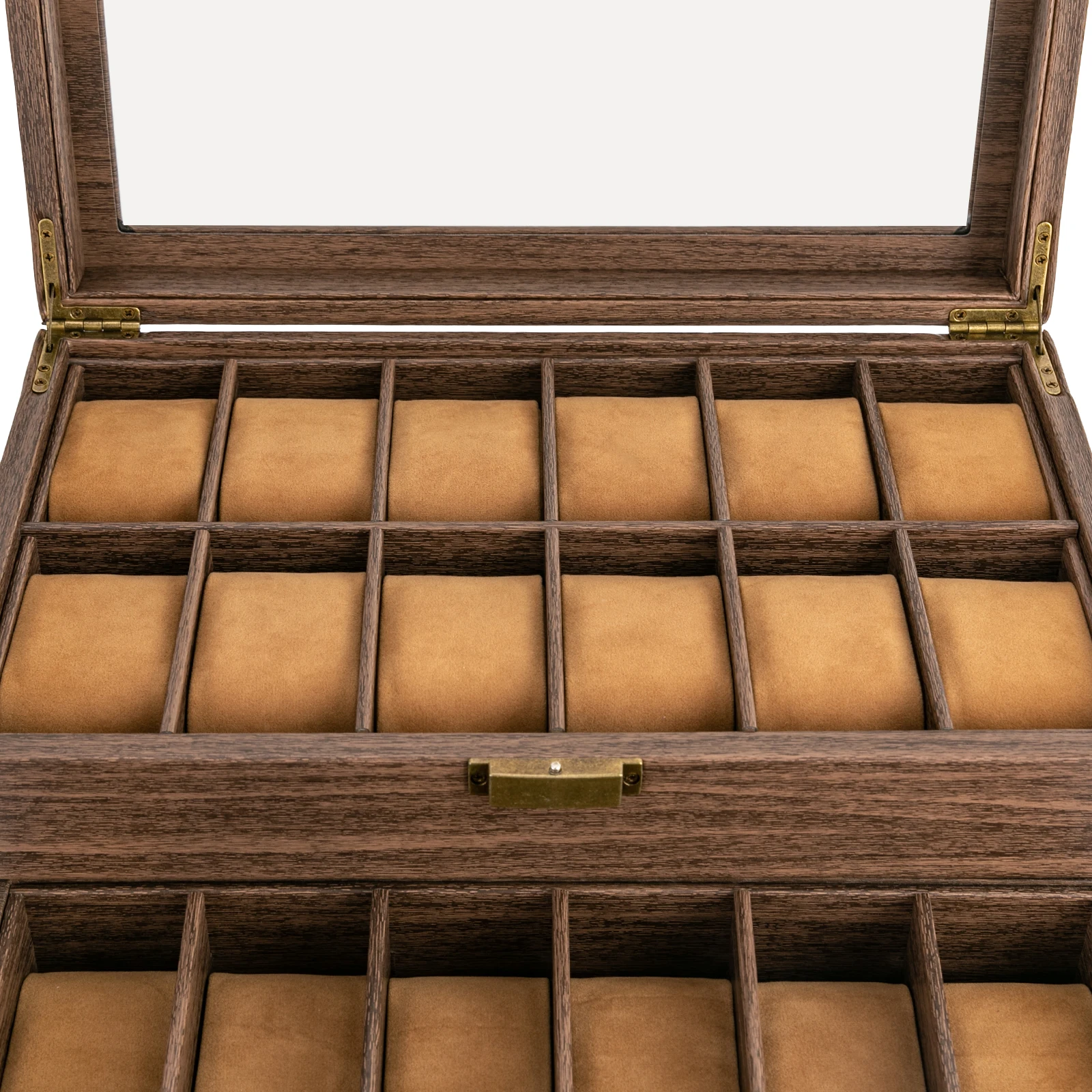 24 Compartments: A total of 24 compartments on two layers can accommodate most sizes of watches while keeping them organized, saving you space and creating a neat desktop.
