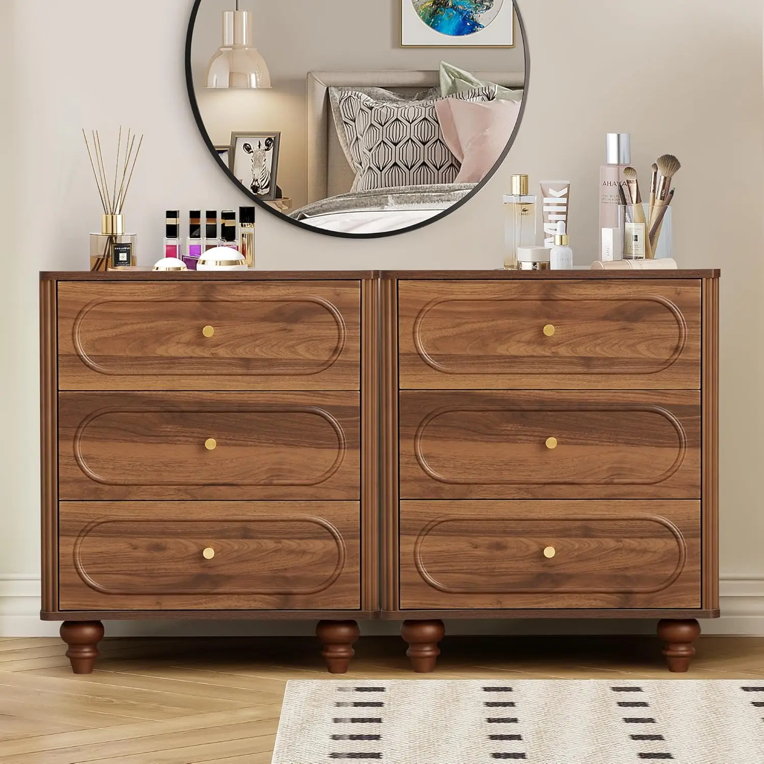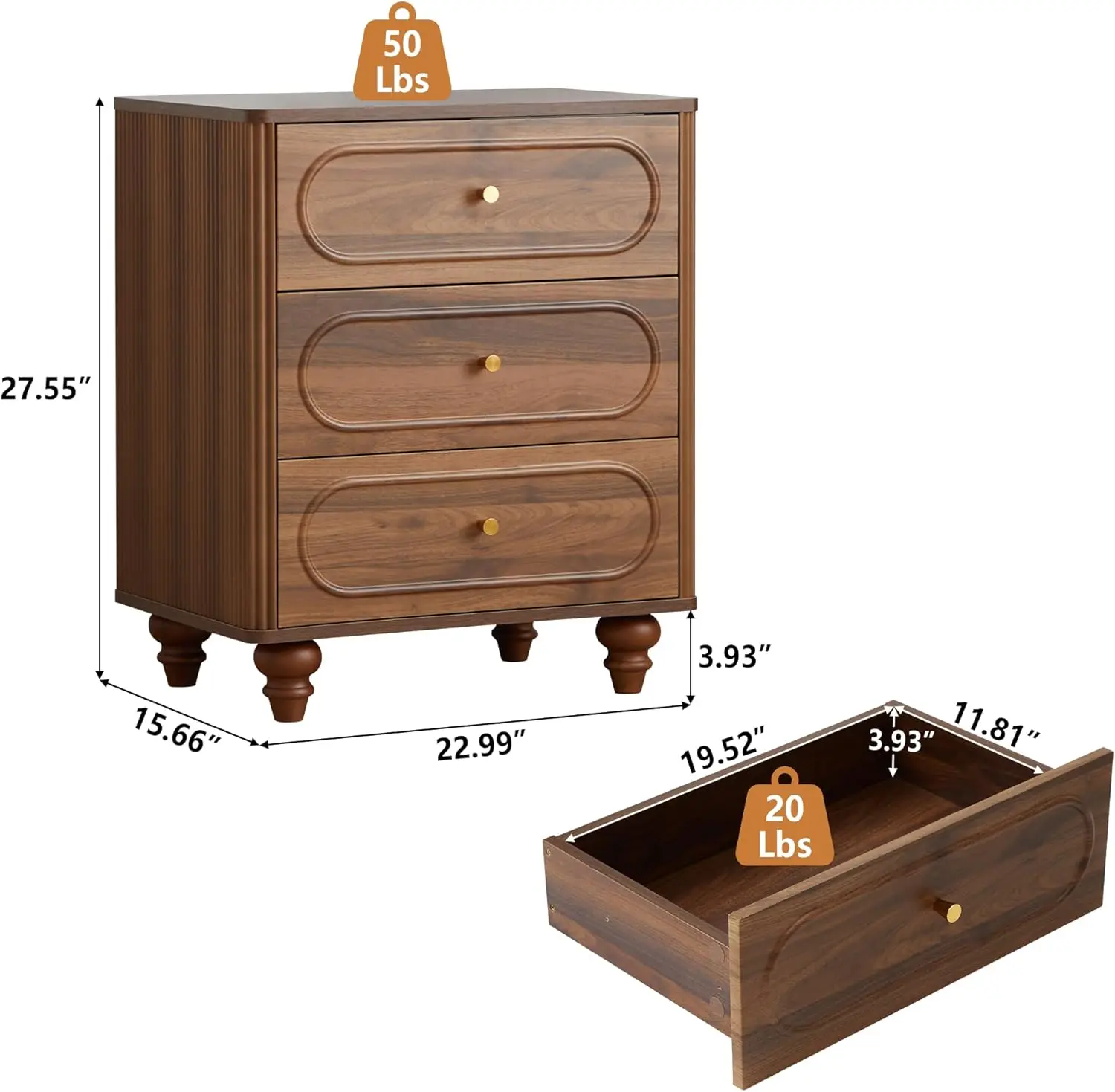 Color | 2 Set Walnut 3 Drawer |