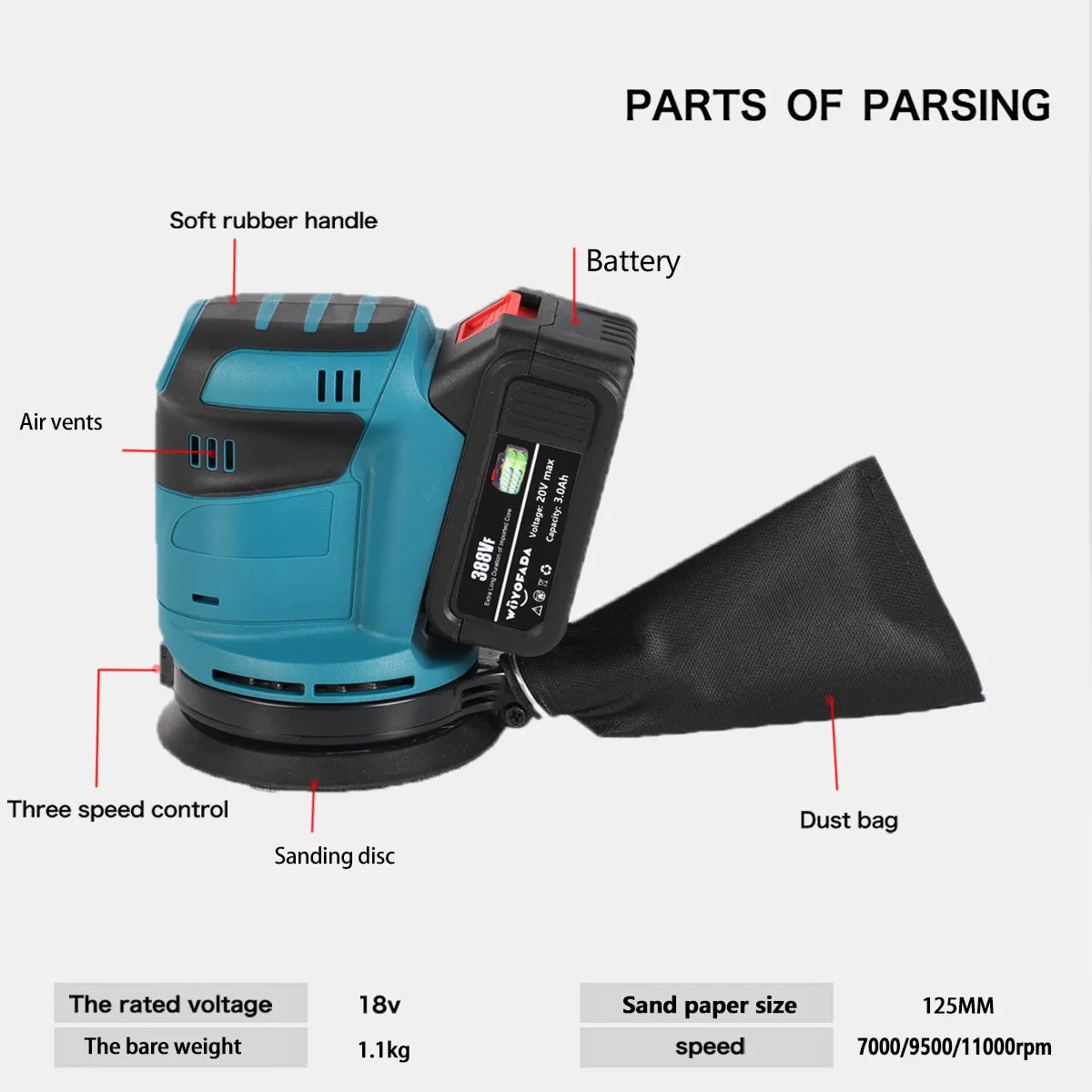 Noted:Our Electric Sander Machine is adjusted in 3 speeds, 7000-11000rpm