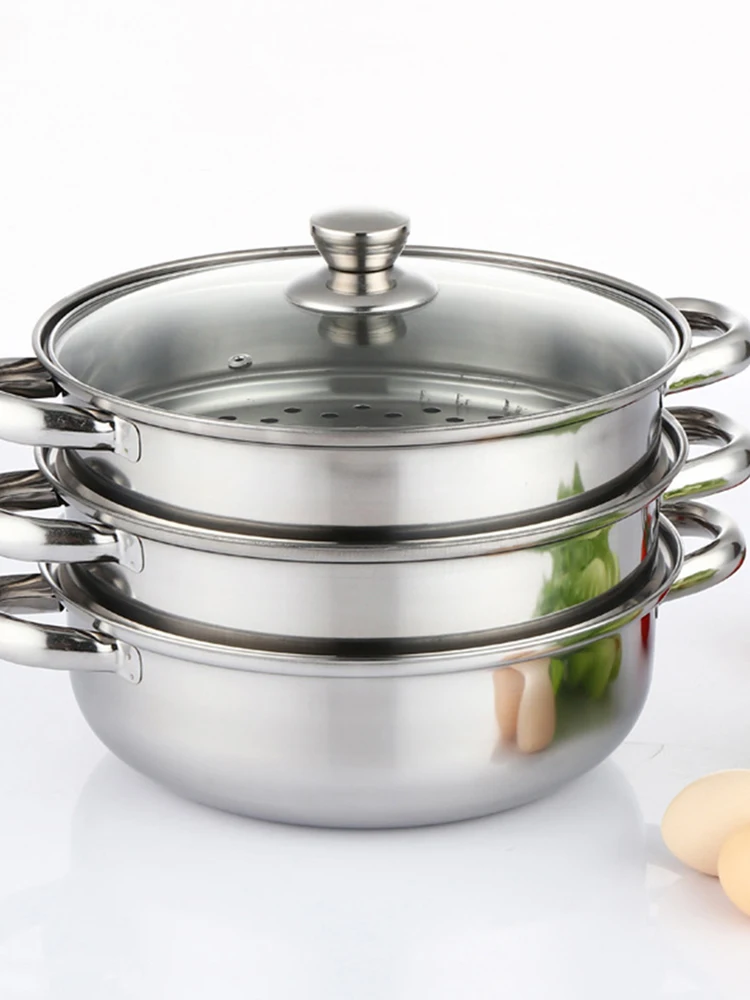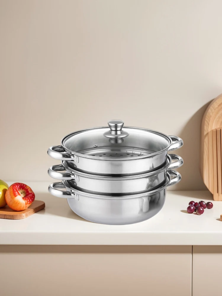 2. 3-Piece Soup Pot Set: This stainless steel cookware set includes 2 steamers and 1 covered soup pot, catering to all your cooking needs.