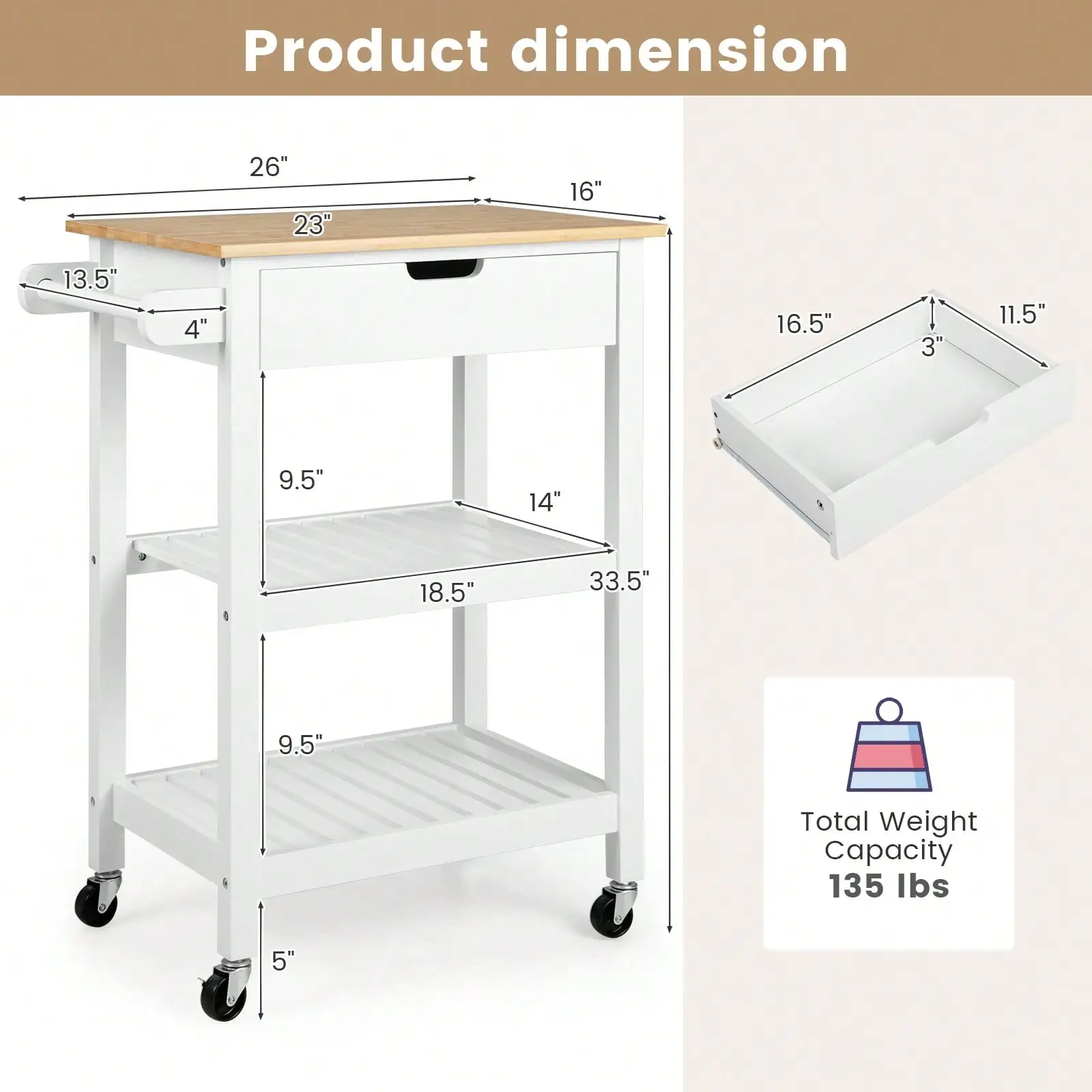 Total Weight Capacity: 135 lbs
