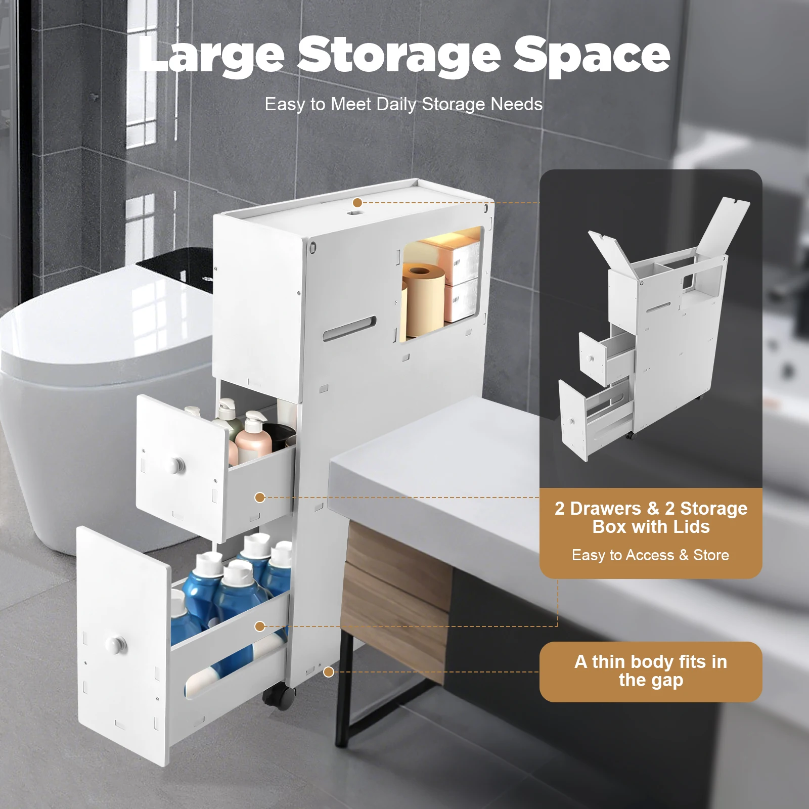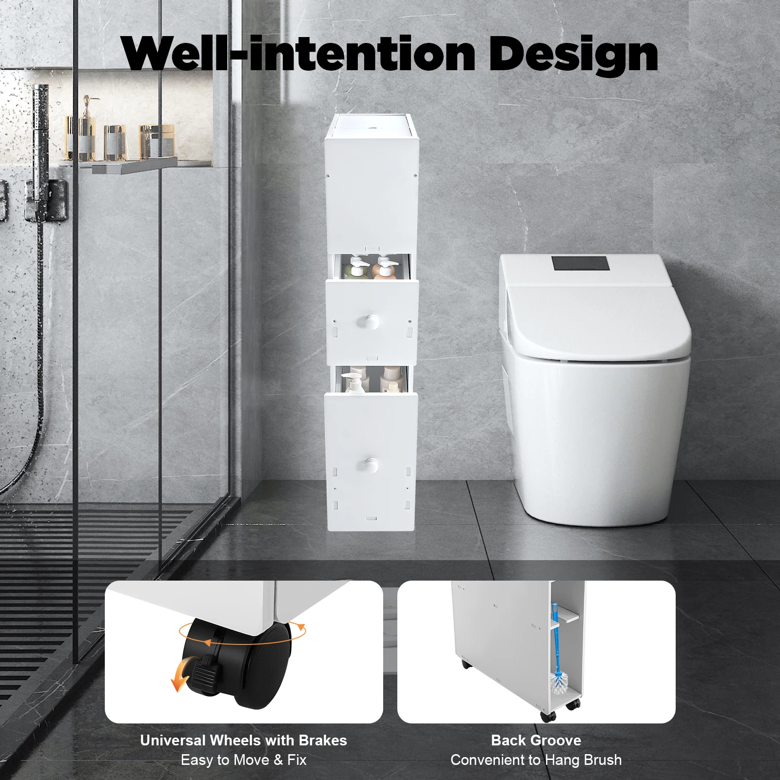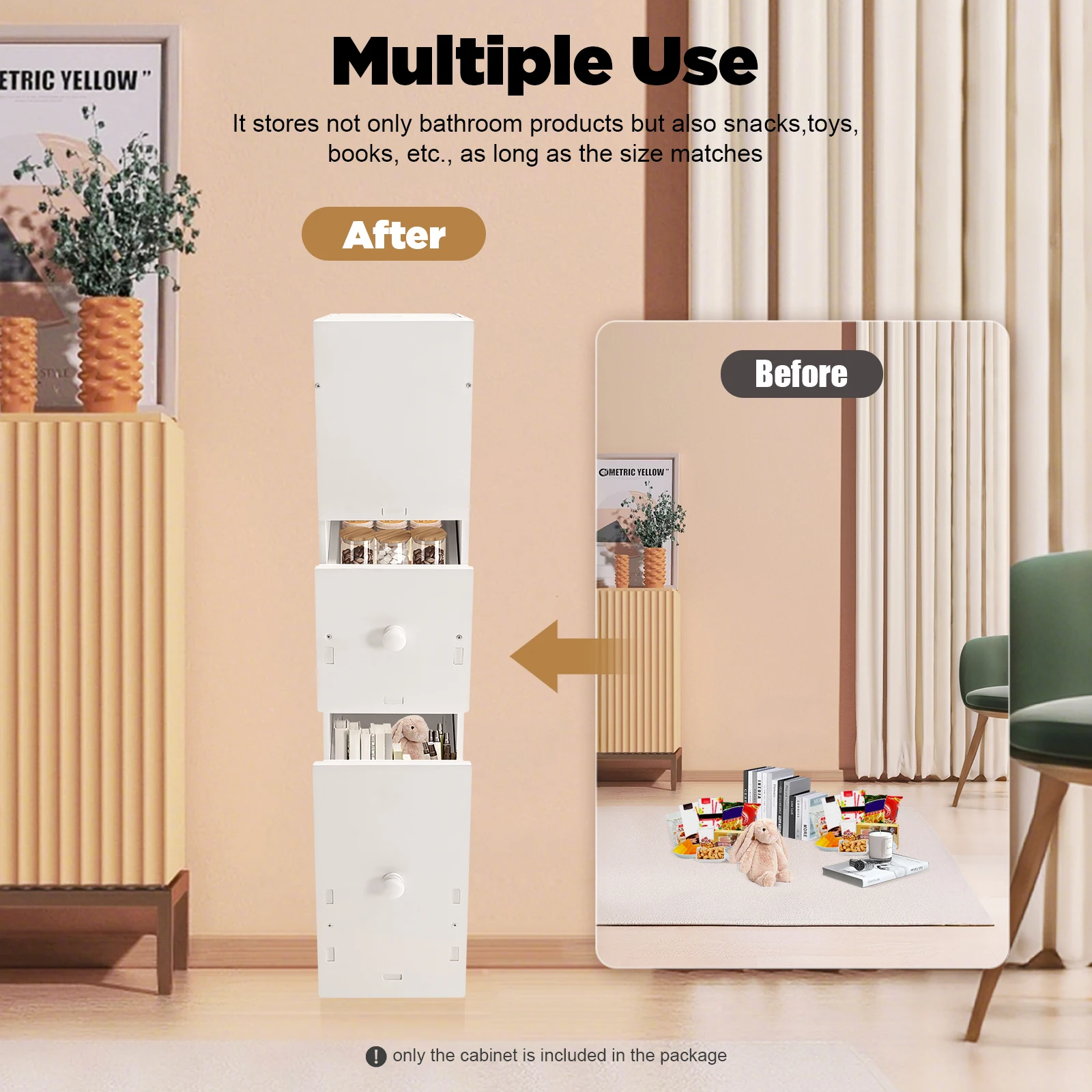 Bathrooms often occupy a small area, but they store a lot of items, including toiletries, tissues, towels, and even some cleaning supplies, which can easily make this small space messy. But as long as the storage is done well, even small spaces can be opened up. Our toilet side cabinet has a small footprint, but it also has powerful storage functions. 4 tiers can accommodate a variety of toiletries and cleaning products, which is a good solution to improve space utilization.