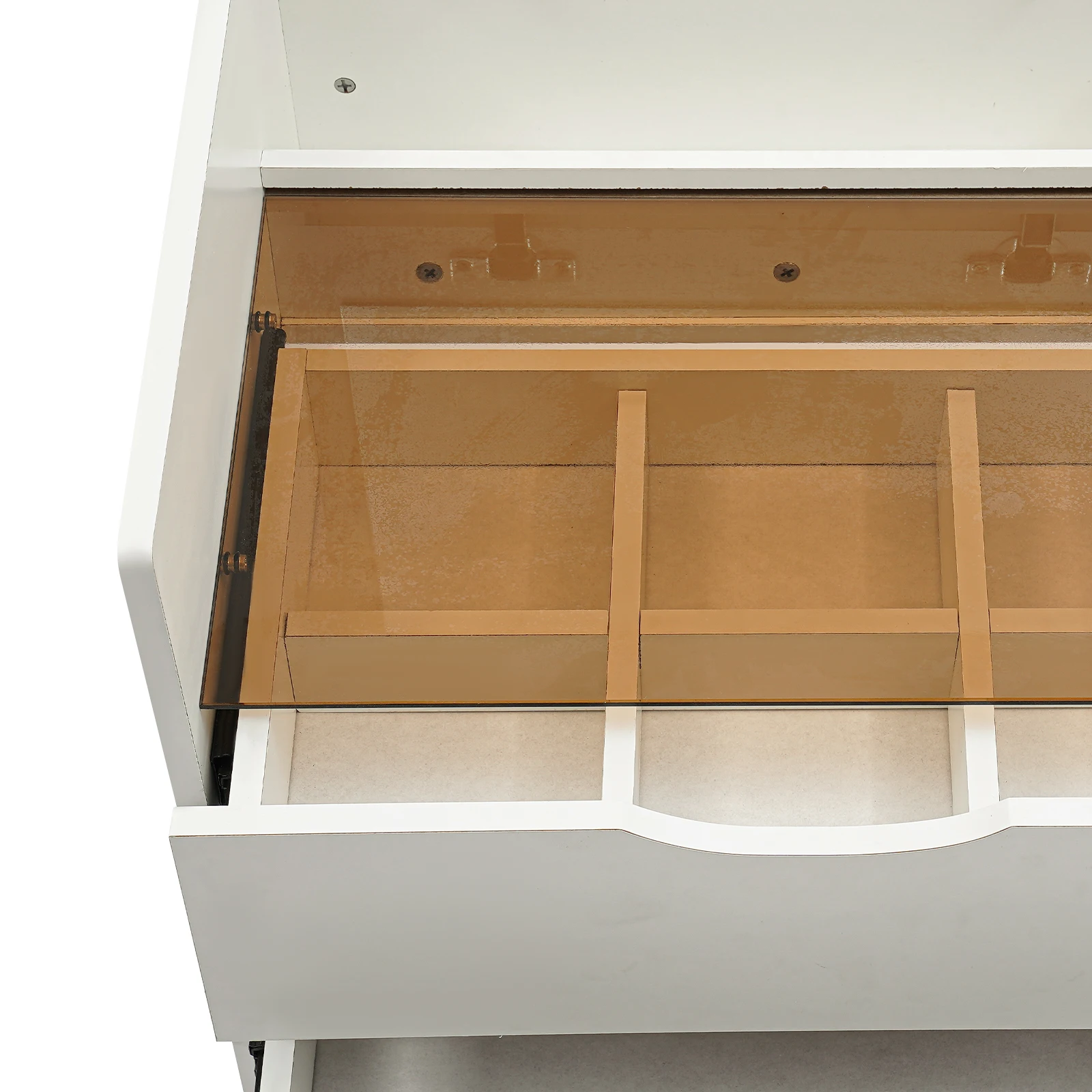 Ample Storage Space: This product comes with two drawers and a stool with a large storage drawer. When you flip the top of the desk, there is one more hidden storage space for you. You can keep your daily cosmetics and makeup tools such as eye shadows, perfumes, and brushes organized for a tidy living space and a convenient makeup process.