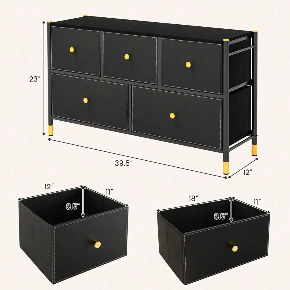 5-Drawer Fabric Dresser Tower Wide Chest of Drawers Storage Organizer Bedroom