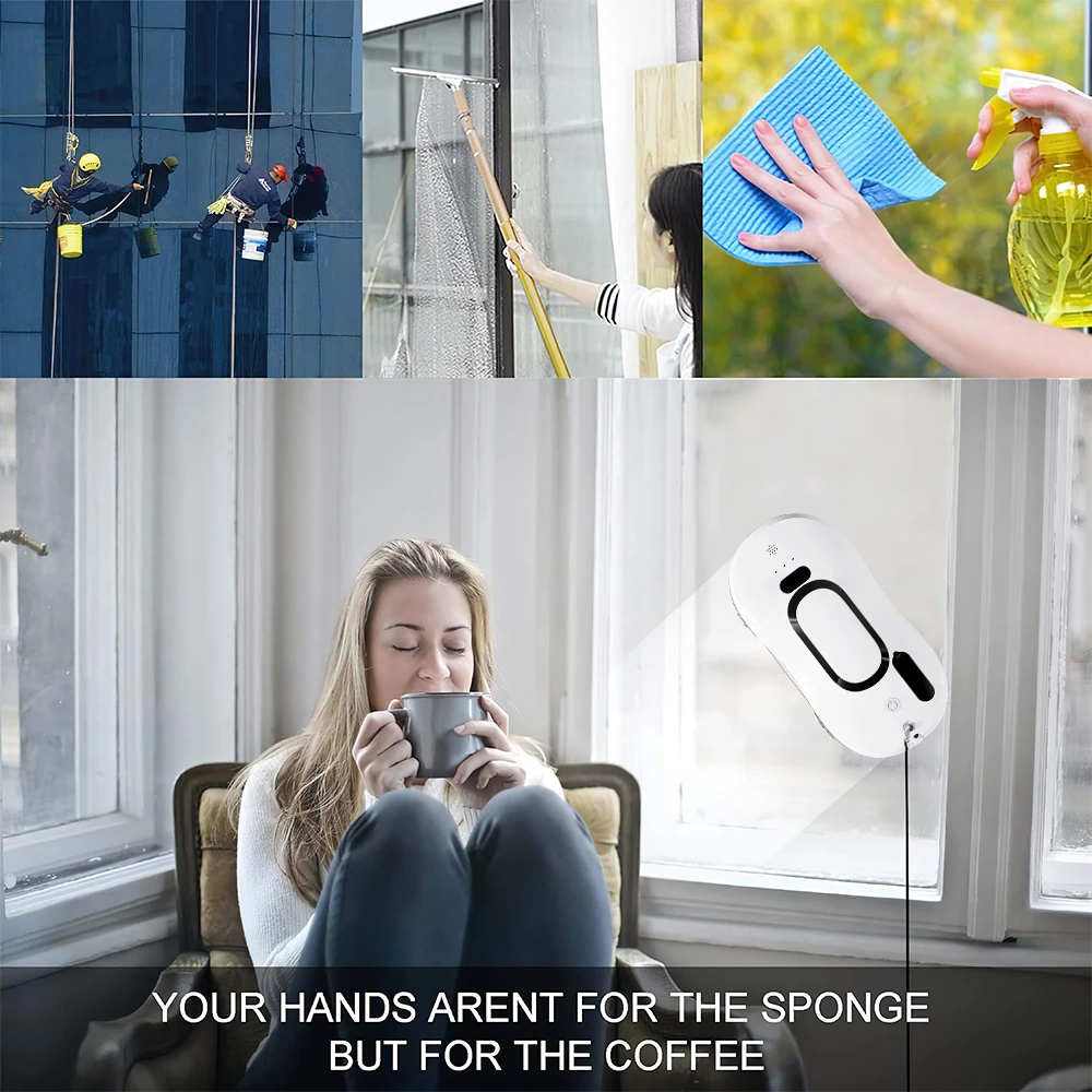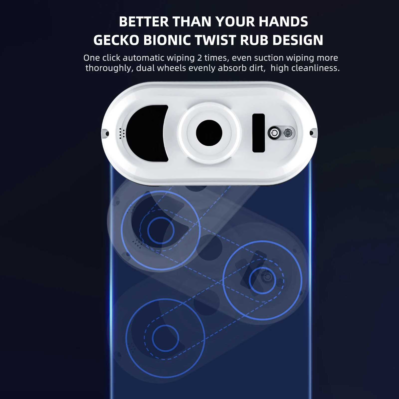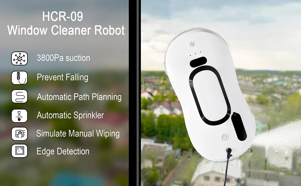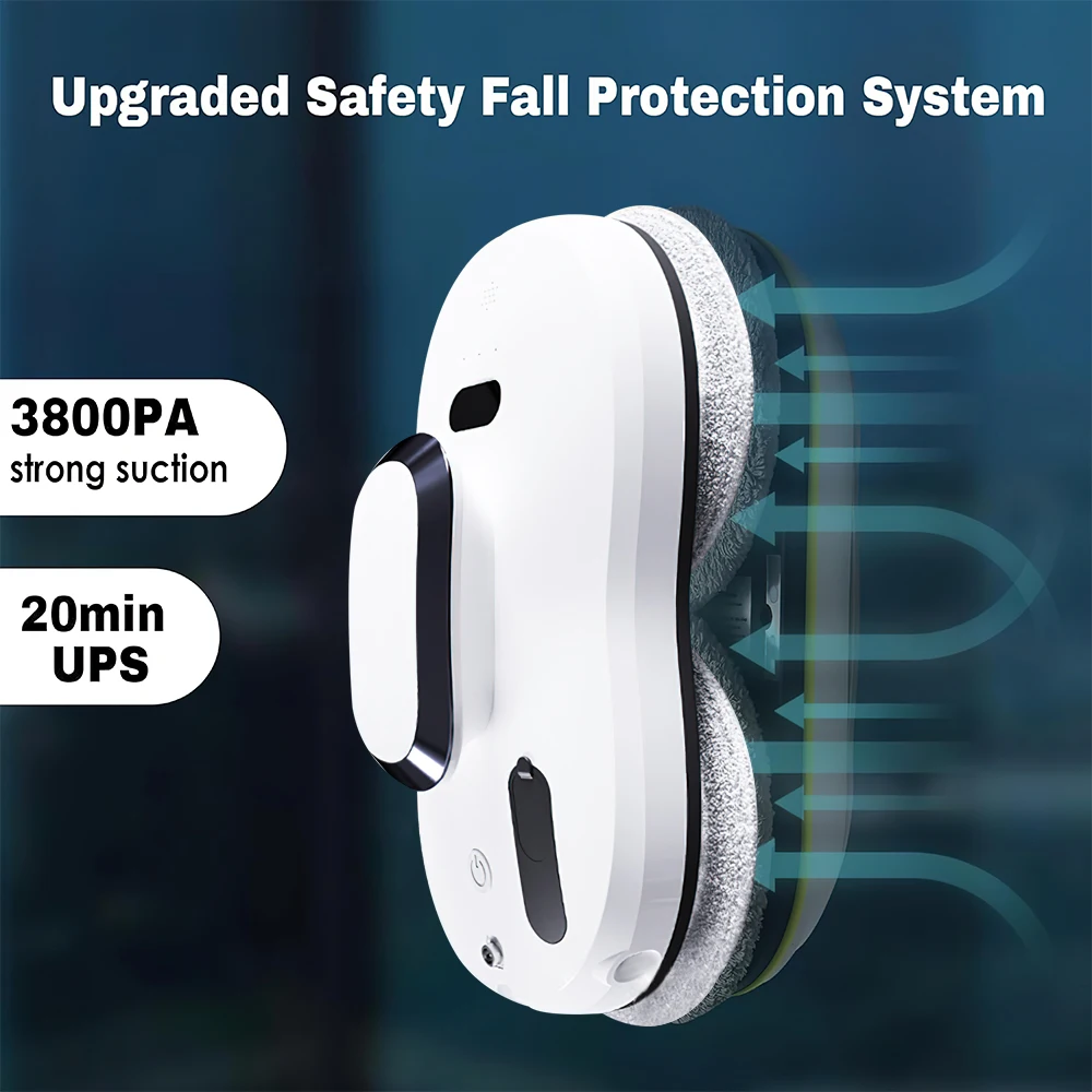 The window cleaning robot is an intelligent household appliance that uses a built-in vacuum motor with a powerful vacuum suction capacity of up to 3800Pa, which can help it suck in air and stand on glass surfaces. Multi surface cleaning robot, compatible with all types of glass, flat walls, tables, floors, ceilings, windows, and hard to reach areas.