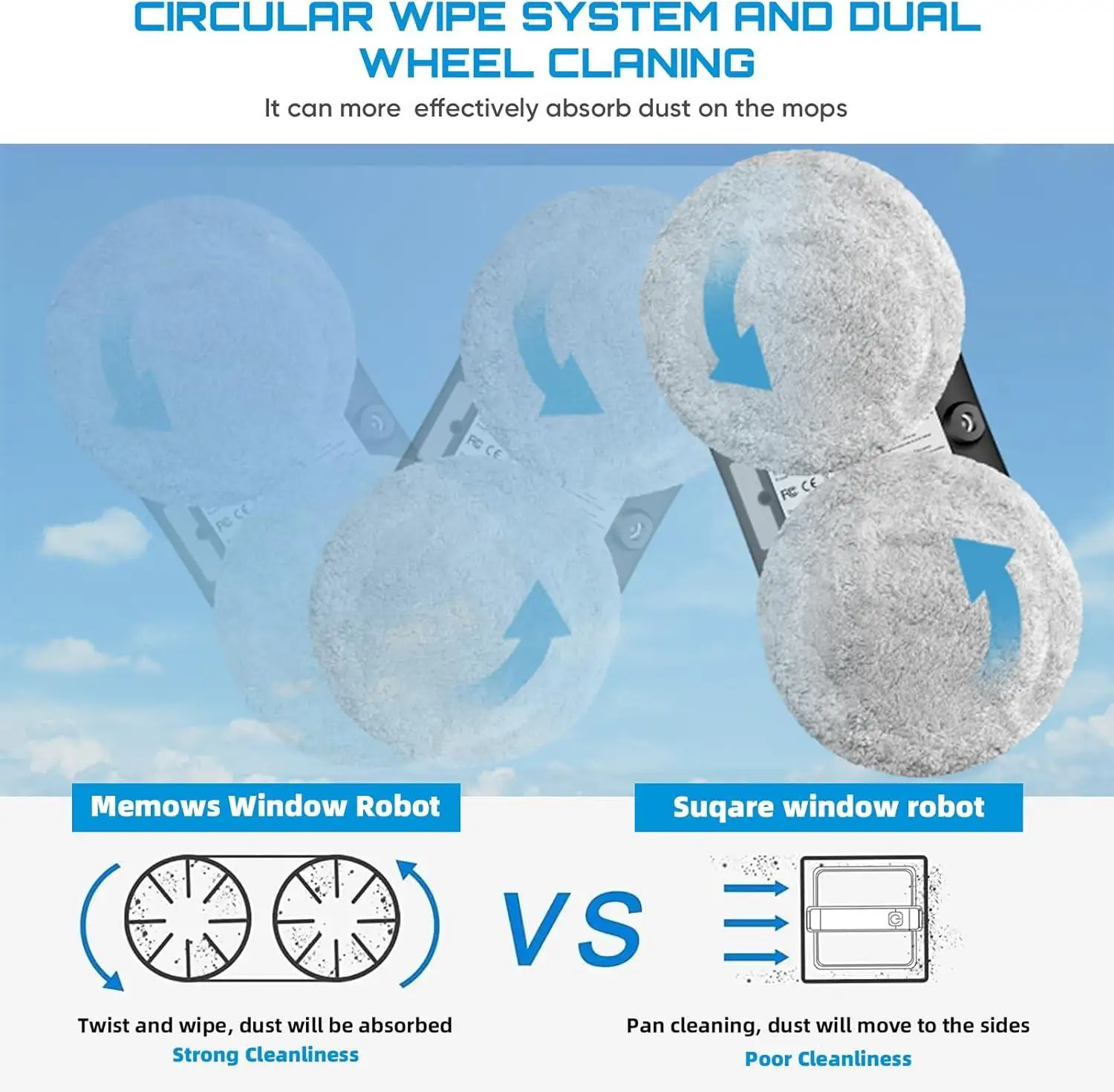 💕 Efficient cleaning: The double helix wiping system of the window cleaning robot can concentrate dirt, allowing the robot to move freely around the window. The rotating cleaning method provides dual cleaning power. And equipped with 5 sets (10 pieces)