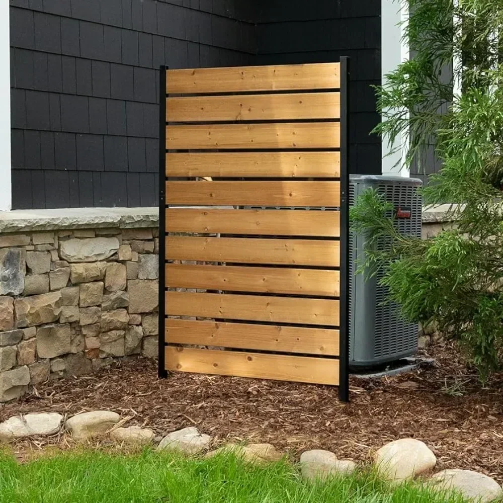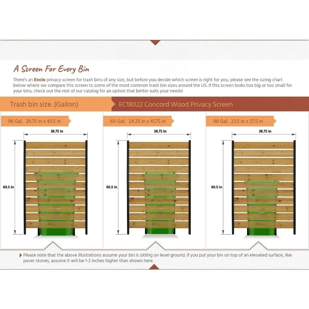 The Concord Wood Privacy Screen is a stylish solution to , hide, or conceal any unsightly items located around your home or sitting on your driveway. Measuring 5 ft in height by 3.2 ft in width this screen will easily conceal trash bins of any size and is great to partition off patio and deck areas. You will receive unassembled materials for 1 screen, please allow for around 90 minutes to build the unit. Our included joiner clips are great to connect multiple purchased panels and partition off a larger area. Space between slats provides efficient airflow, and included spacers help with perfect placement of slats. The real wood, water-based stain panel design gives this privacy screen a stylish look in any yard. We recommend applying a stain every 6 months to maintain optimal color. Transparent or semi-transparent exterior stains will maintain the natural wood look, while solid stains will cover more of the natural wood grain. If the product goes longer than recommended without staining, it will need to be sanded and may require a semi-solid or solid stain. Our powder coated aluminum posts prevent rusting and provide stability to your screen. This screen is no-dig and very easy to install without tearing up your yard or leaving large holes behind. We are a USA based company, located in Charlotte, NC, with a great customer care team willing to help with any questions that may arise during your DIY assembly and installation.