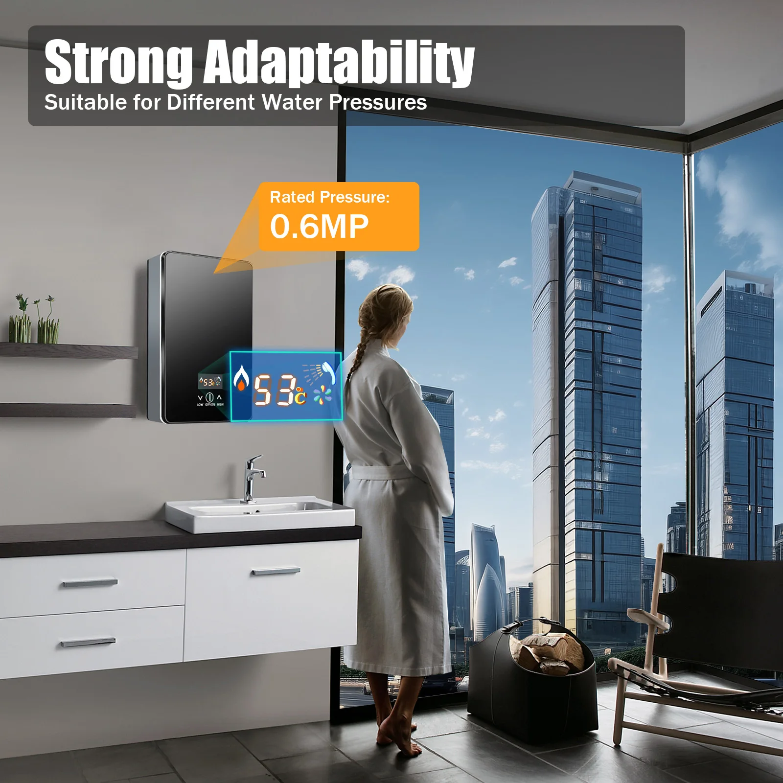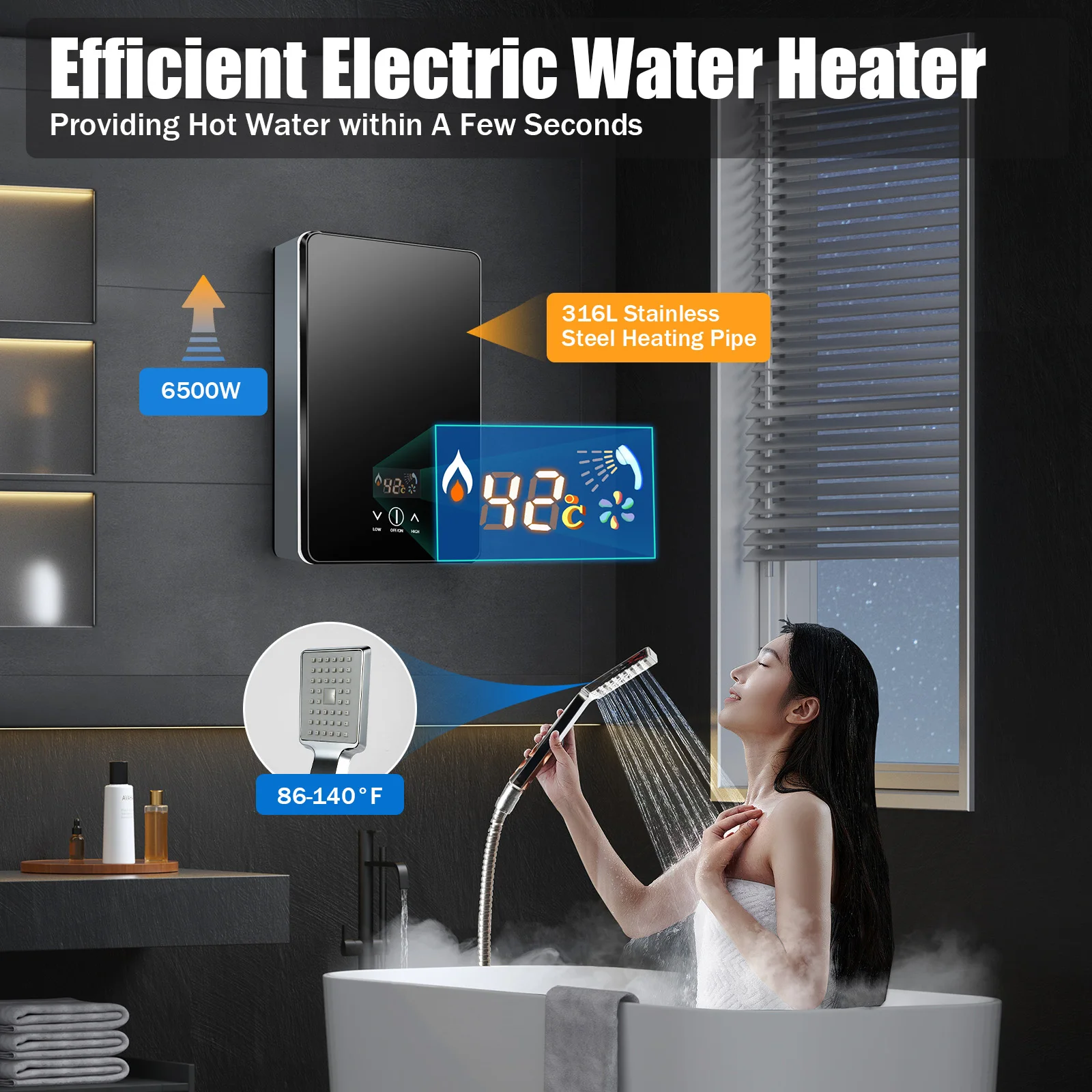 Highly Efficient: With the joint efforts of 6500W power and a fast thermal heating tube, it can provide you with uninterrupted hot water in a few seconds, easily meeting your daily hot water needs.