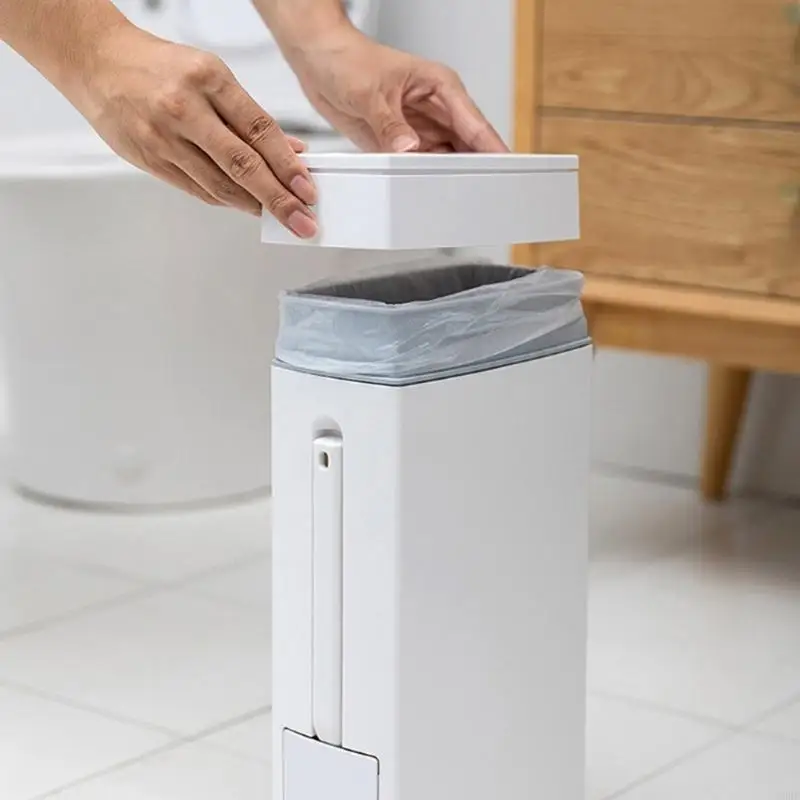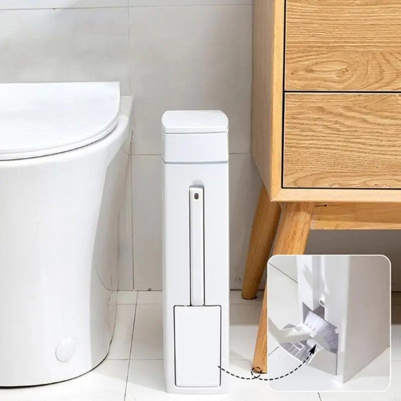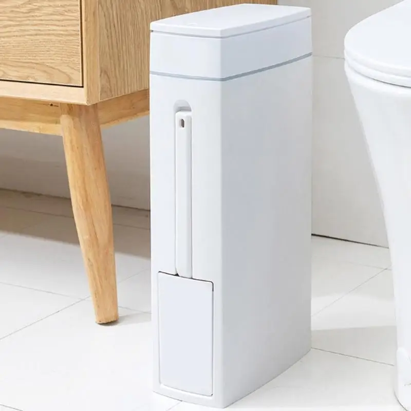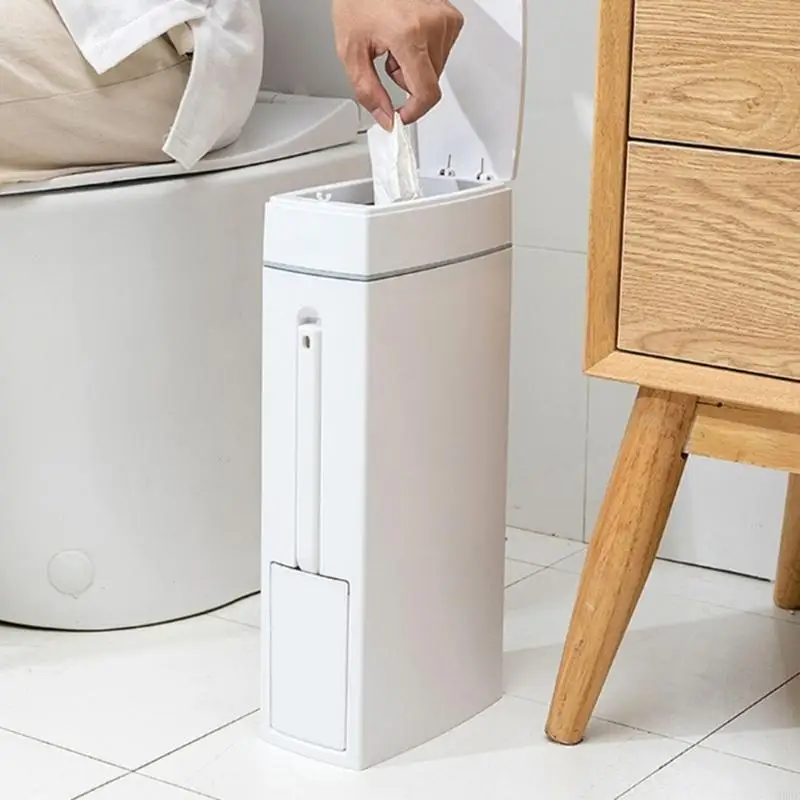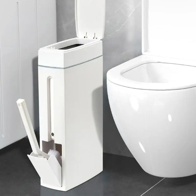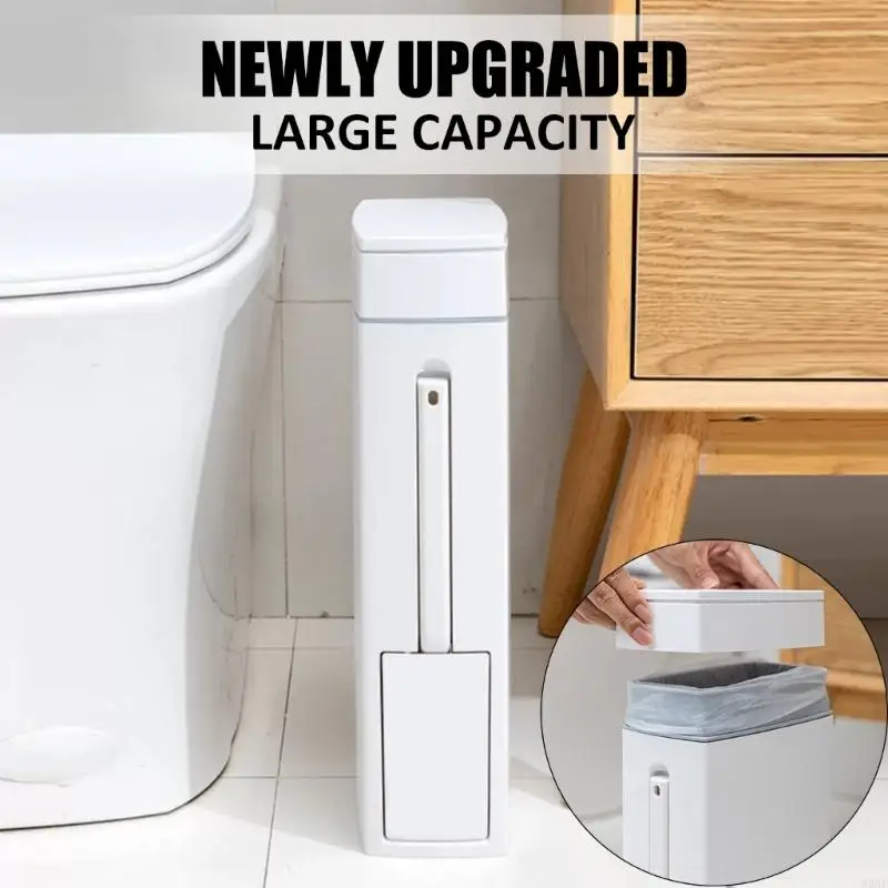 69HF Narrow Bathroom Trash Can with Toilet Brush 4.5L Press-type Waste Bin Dustbin