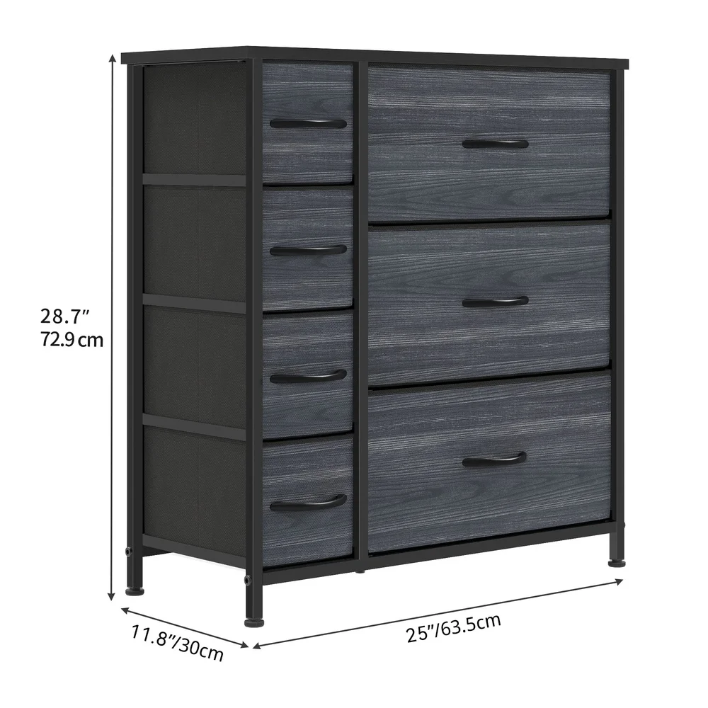 Spacious Storage: 7 drawers in two sizes provide ample space for clothing, accessories, and essentials.  Overall Dimensions: 25"L x 11. 8"W x 28. 7"H, Drawer Sizes: 15. 6"L x 11. 2"W x 8. 5"H / 5. 9"L x 11. 2"W x 6. 3"H.