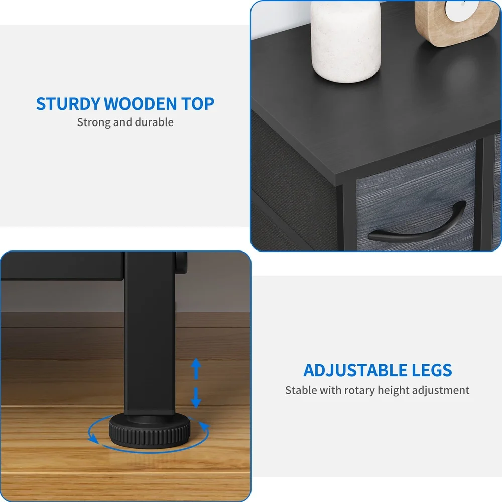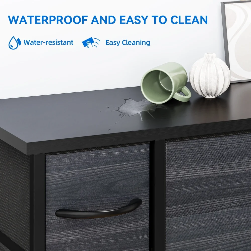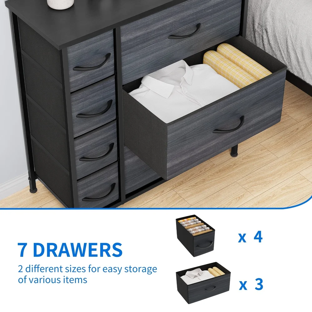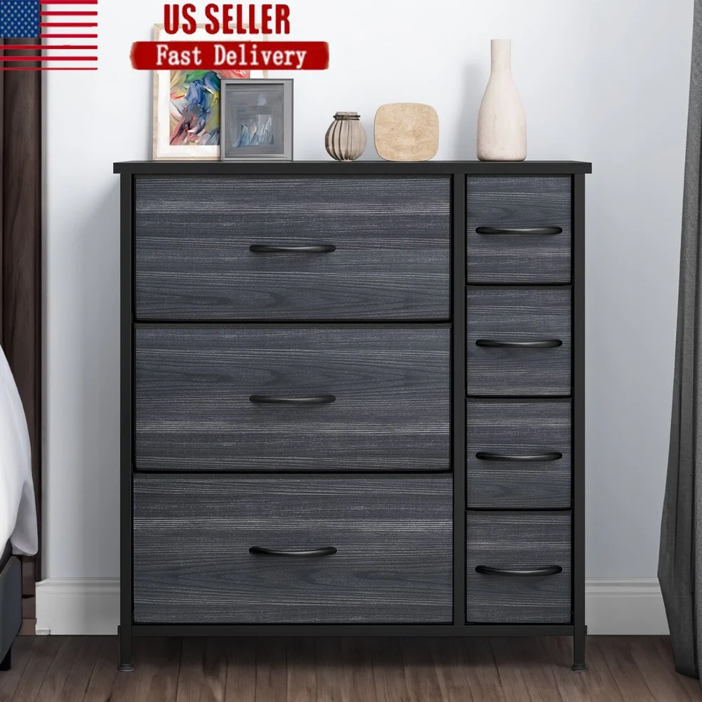 Durable & Stable: Sturdy metal frame and MDF wooden top ensure long-lasting use.  7 ovable fabric drawers with easy-pull handles for smooth access.  Adjustable feet protect floors and enhance stability.