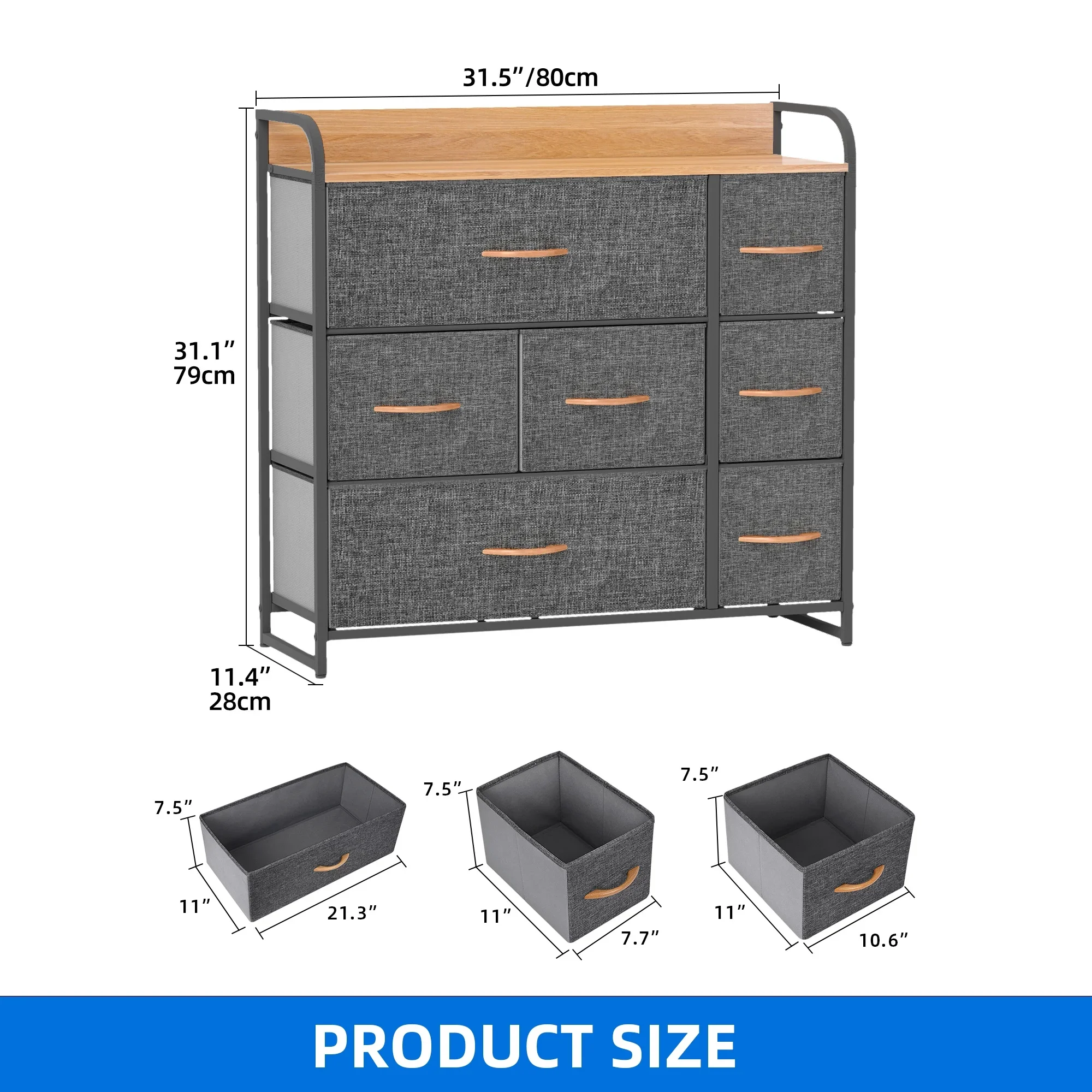 • LARGE CAPACITY - 7 drawers of different sizes provide ample storage space and are easy to organize. Overall dimensions: 31.5" L x 11.4" W x 31.1" H. Drawer dimensions: 21" L x 11" W x 7.6" H / 11" L x 11" W x 7.6" H / 7.9" L x 11" W x 7.6" H.