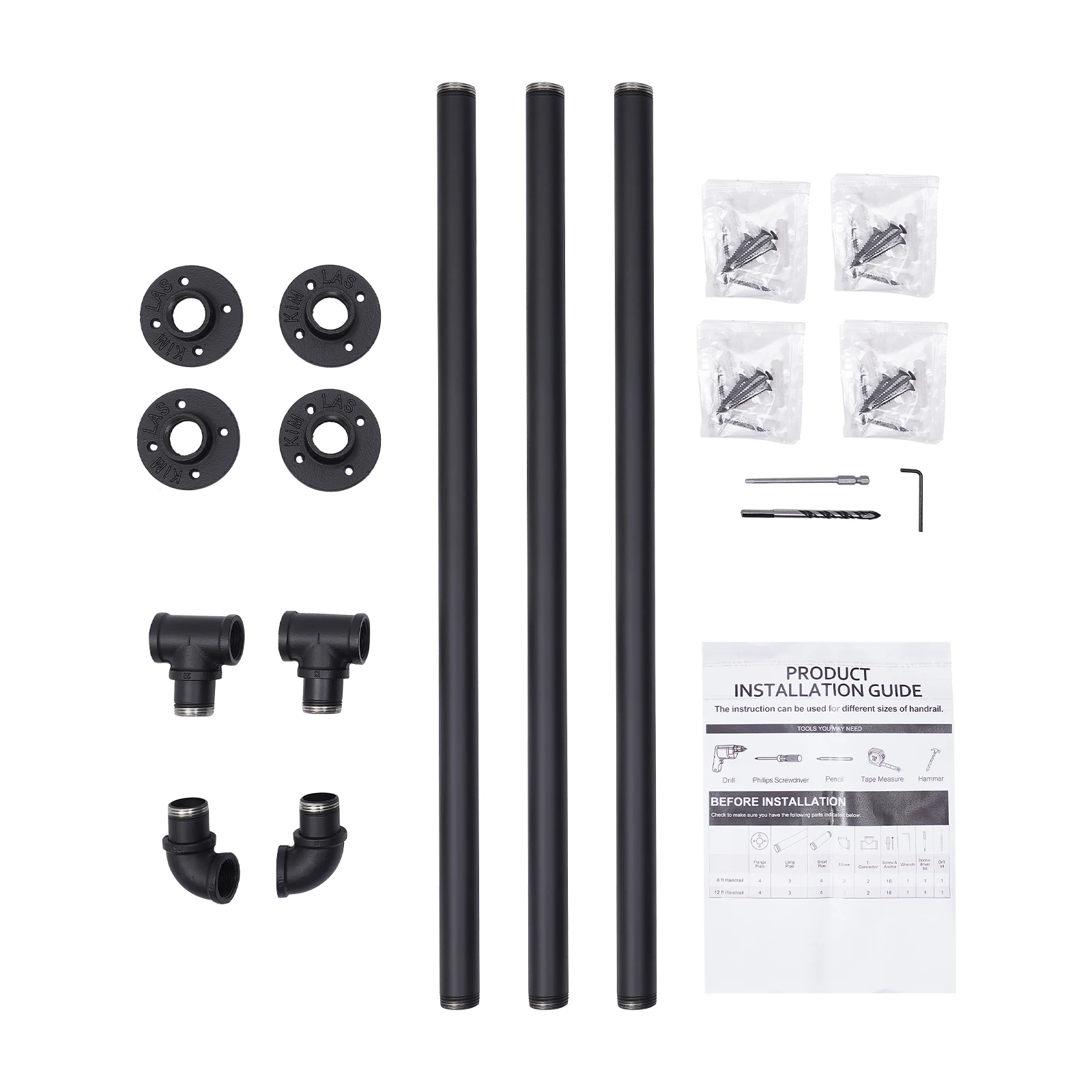 DIY Installation: This 3-section stair handrail can be installed horizontally, inclined, or vertically, which is excellent for DIY an industrial cool-looking handrail on your staircase. In addition, you can install it separately according to your needs.