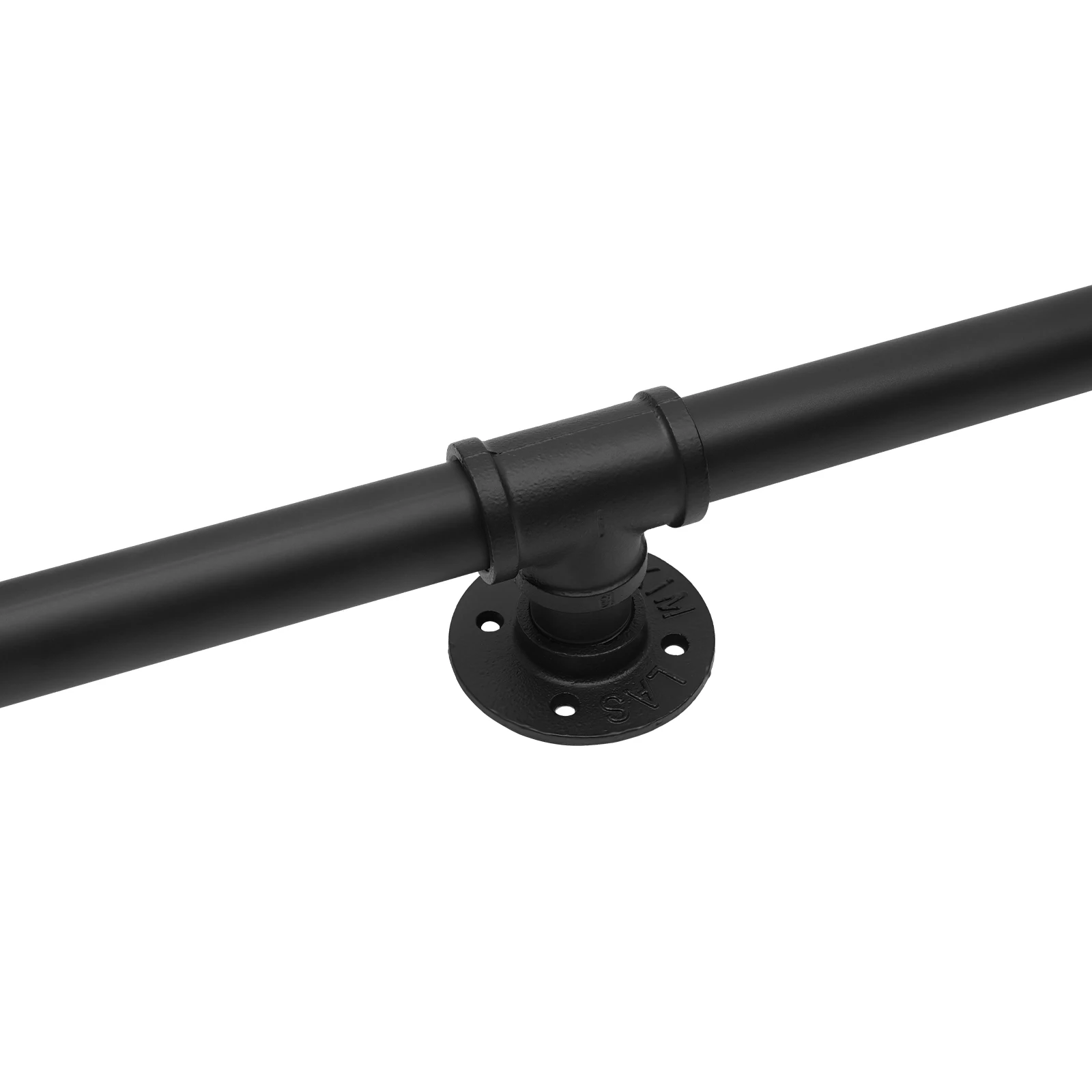 Our stair handrails adopt galvanized iron pipes with high-temperature baking painting treatment, making them anti-rust and strong, so that you can use them for the long term. Their black surface and smooth streamlines allow for versatile decoration to your room, adding elegant and simple elements to your home. In addition, the T-shaped connection and solid chassis improve their stability and load capacity, so you can use them with confidence.