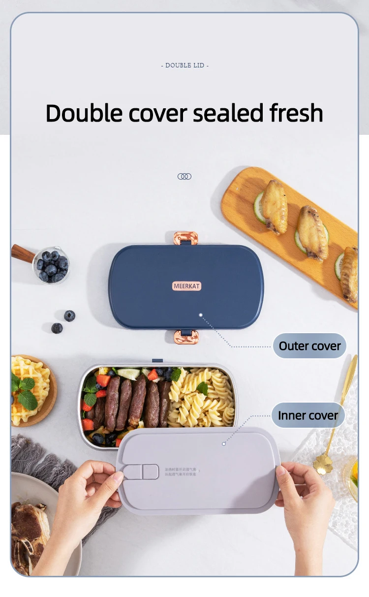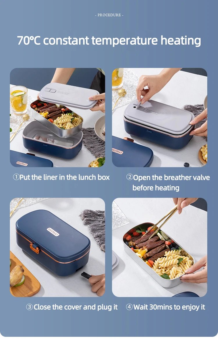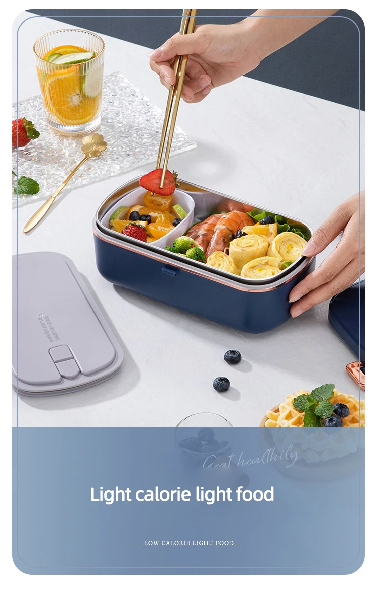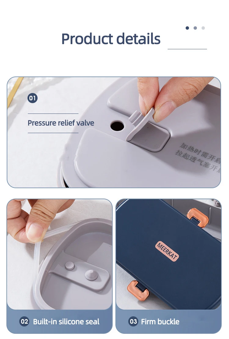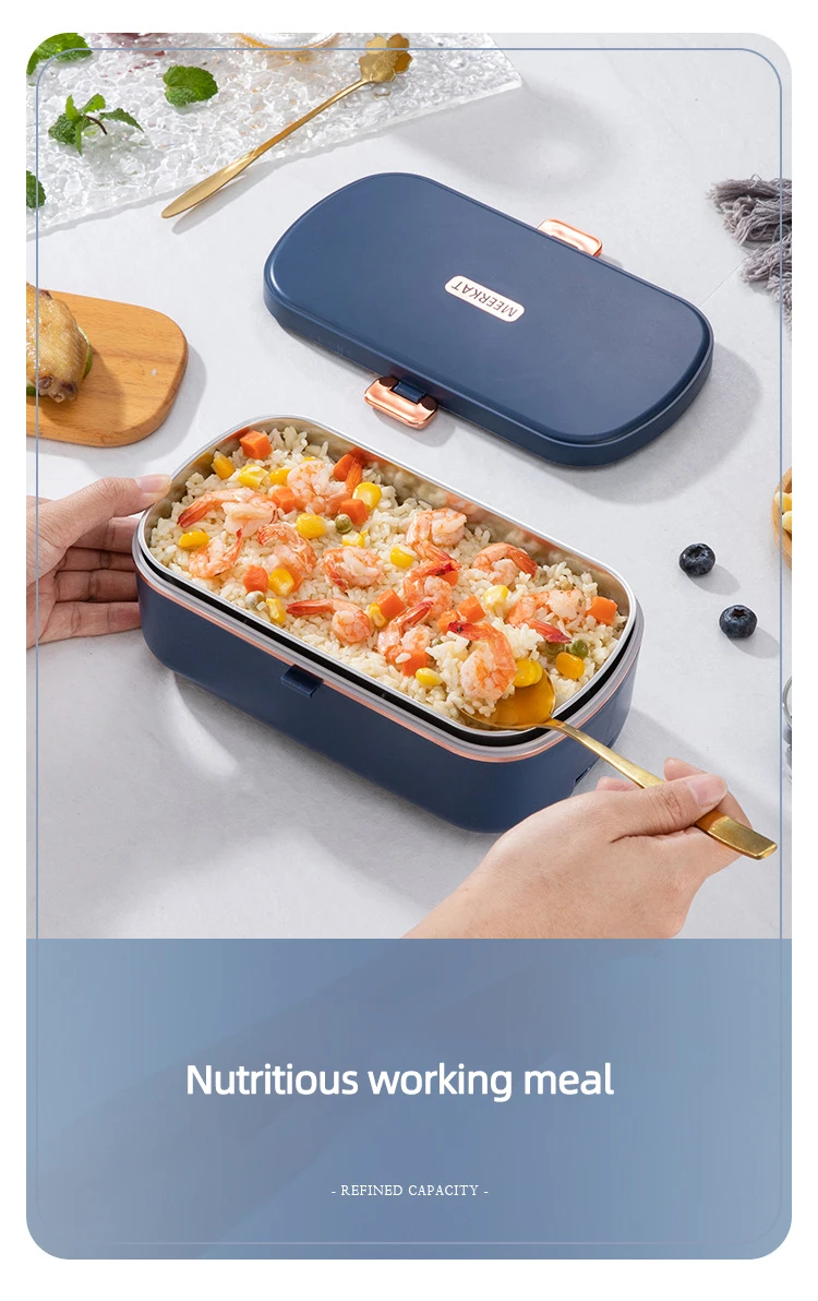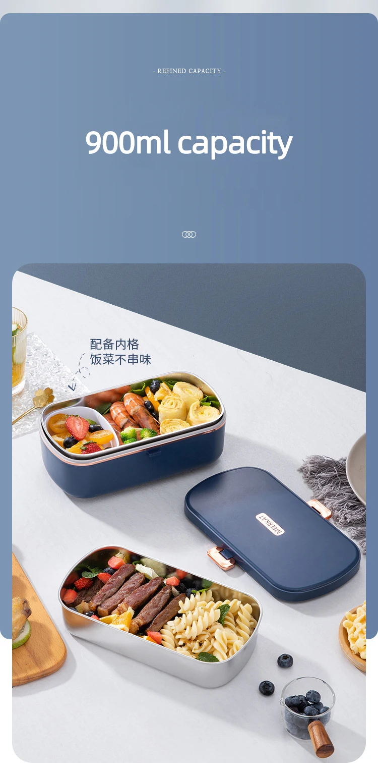 900ml Electric Lunch Box Water Free Heating Bento Box Portable Rice Cooker Thermostatic Heating Food Warmer For Office 220V