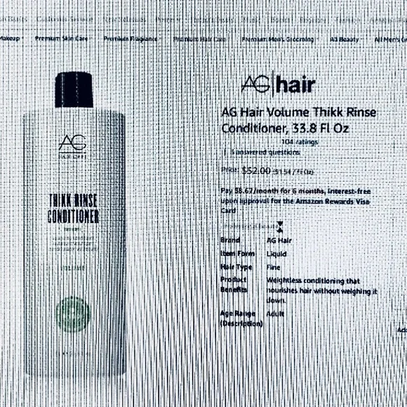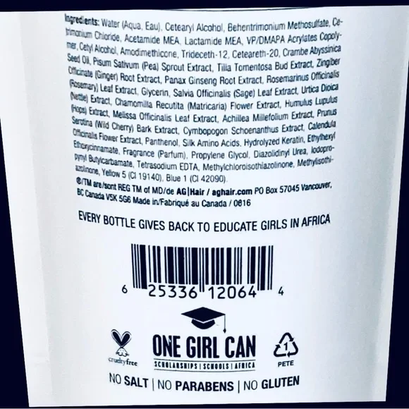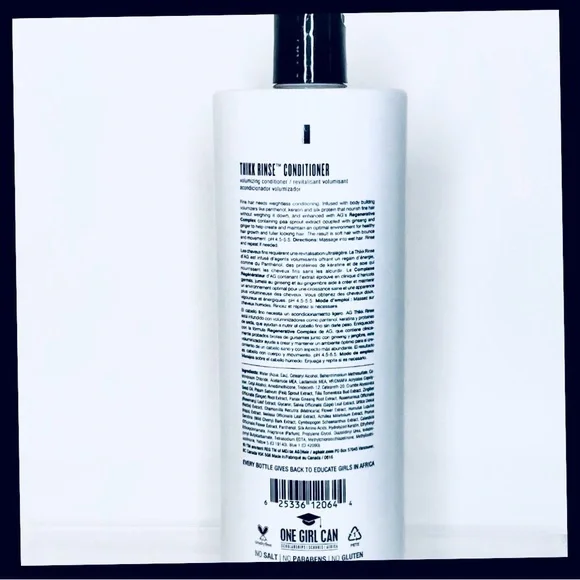 Large Size AG Thikk Weightless Volumizing Conditioner NEW 33.8 Oz. Fine hair needs weightless conditioning!Enter Thikk Volumizing Conditioner.Infused with body building volumizers like panthenol, keratin and silk protein that nourish fine hair without weighing it down. Enhanced with AG’s Regenerative Complex, containing clinically-proven pea sprout extract coupled with ginseng and ginger to help create and maintain an optimal environment for healthy hair growth and fuller looking hair. The result is soft hair with body and movement.Paraben & Sulfate FREE!Current Amz Price-as you can see in pics-is $52!Get it for much less from me!All my items are stored inside, freshly laundered/cleaned (unless still with tags) and come from a pet free/smoke free home!Thanks for shopping in my store!Let me know how I can help you with this or any other item in it