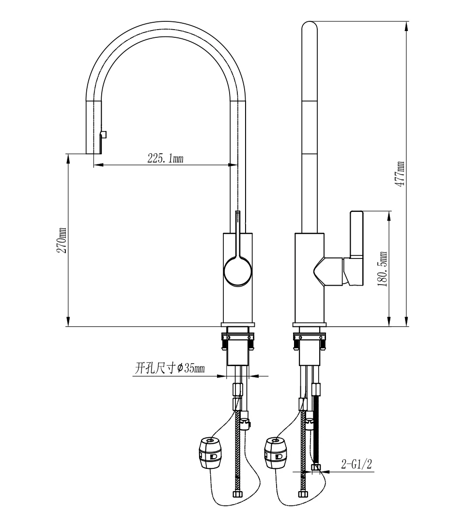If you buy the faucet contains hoses, hose specification for 1/2” by default,standard size.