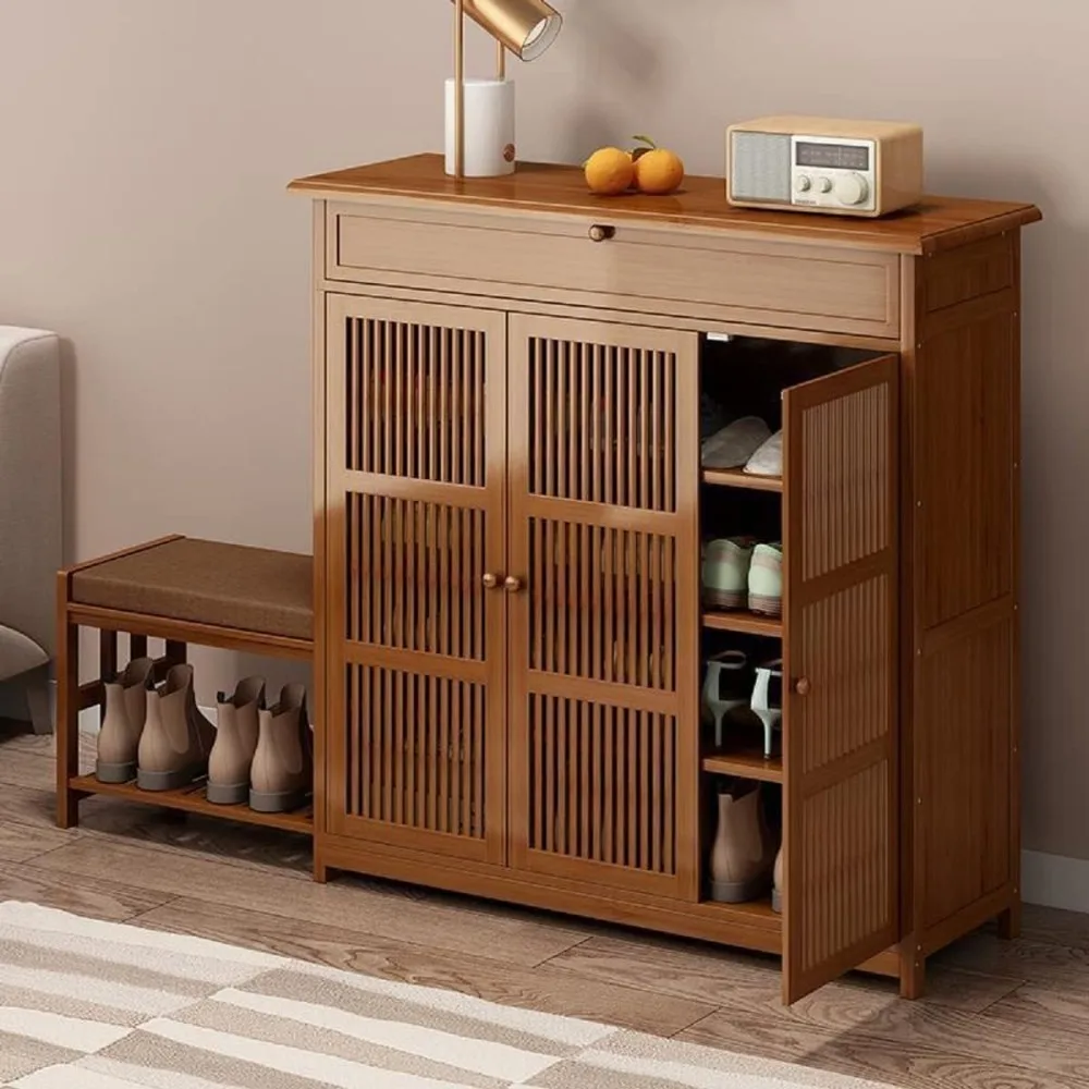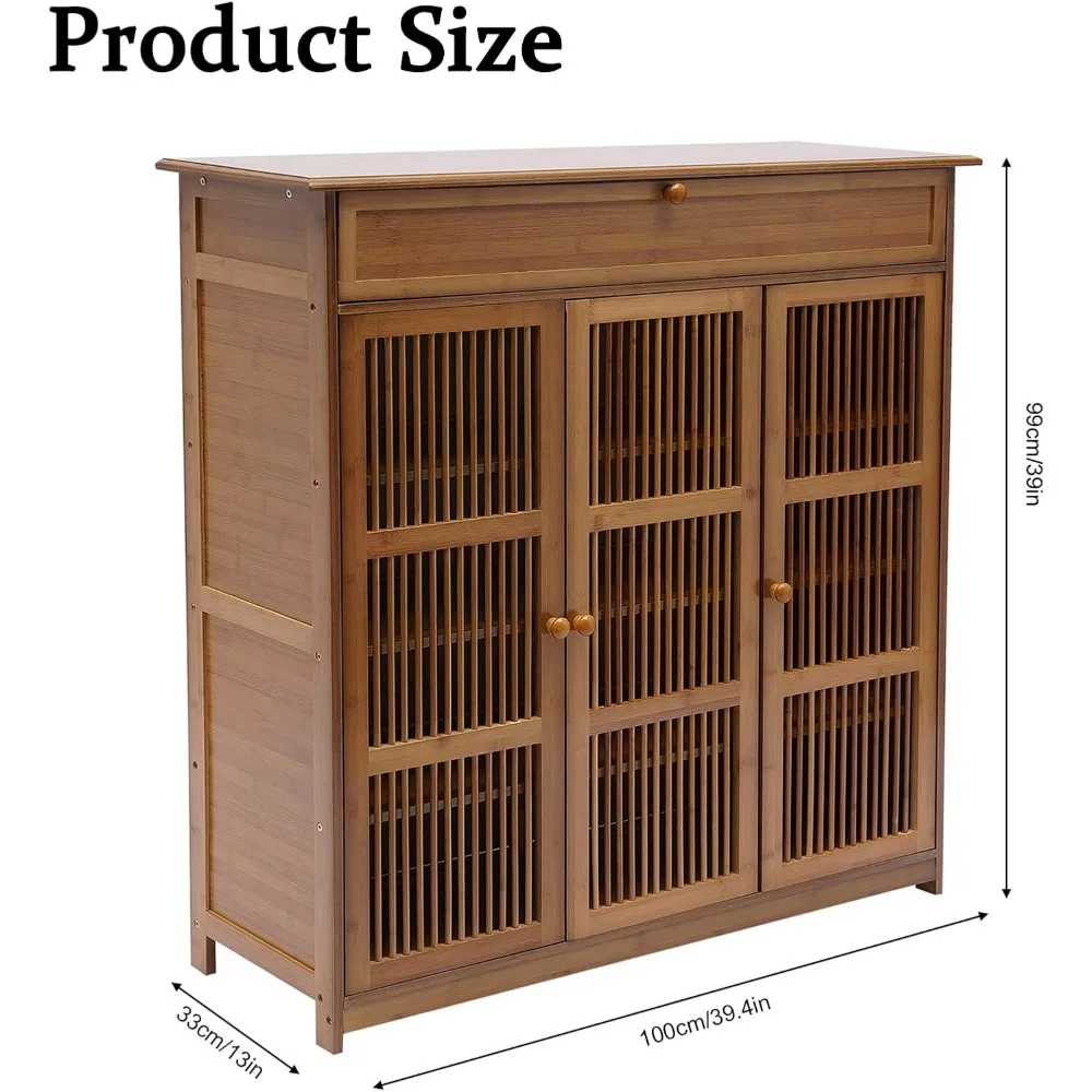 Bamboo Shoe Storage Cabinet Organizer 4 Tier Shoe Rack Organizer with Doors for High Heels Slippers Boots Sneakers (40 Inch L)