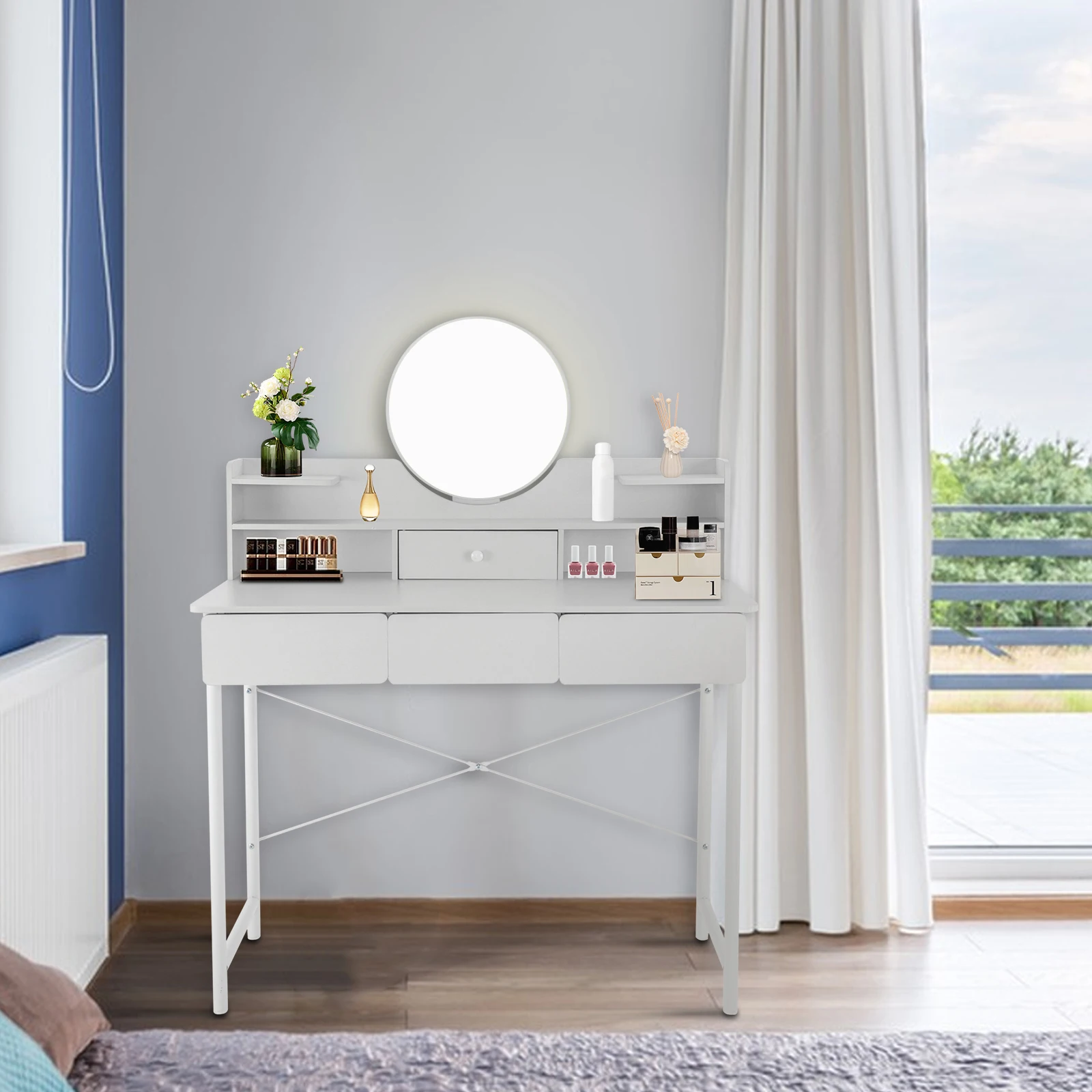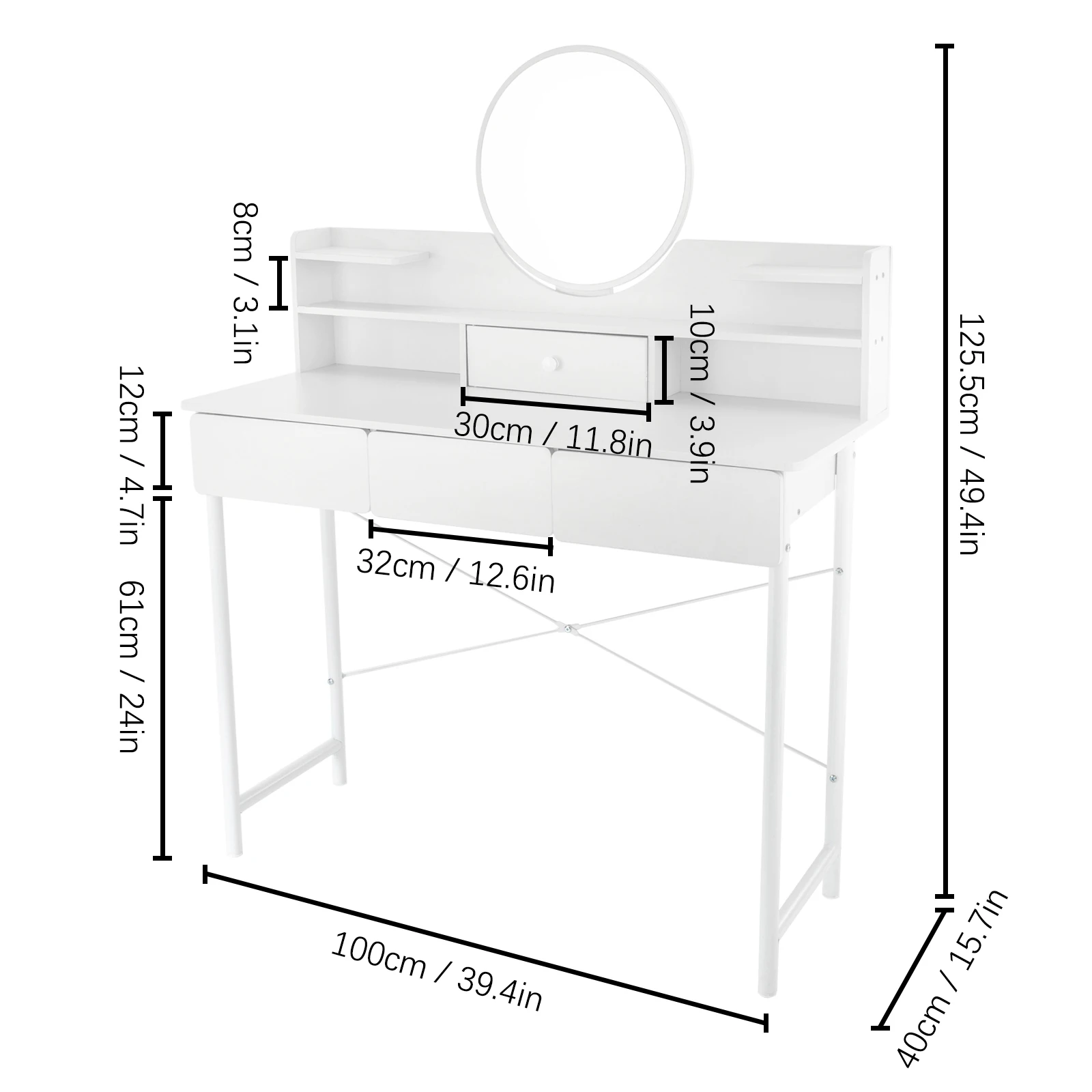 It can be used as a vanity desk, writing desk, bedside table, and computer desk to meet your diverse needs, and is suitable for storing cosmetics, beauty supplies, books, or laptops in the bedroom, living room, and other places.