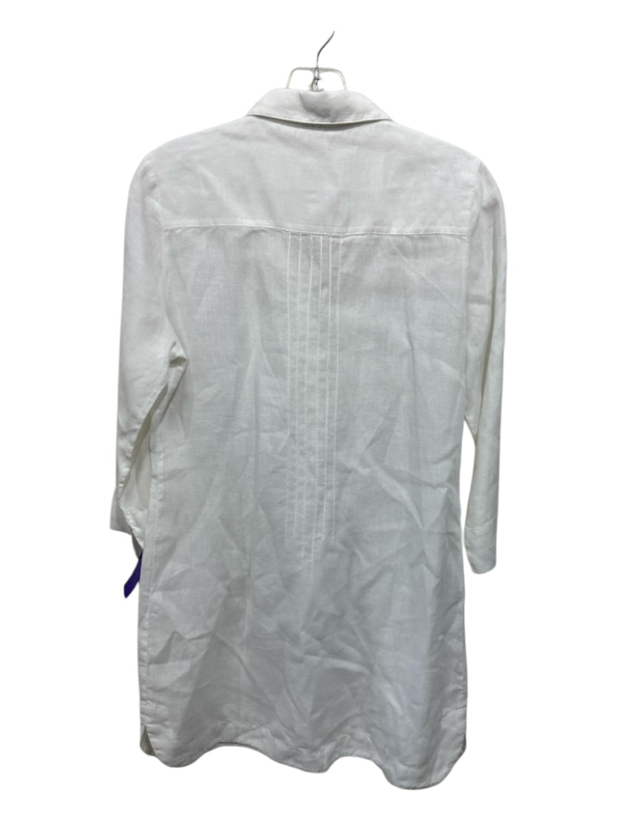 Belluna Size 2 White Linen Button Up Darted Long Sleeve Collar Dress