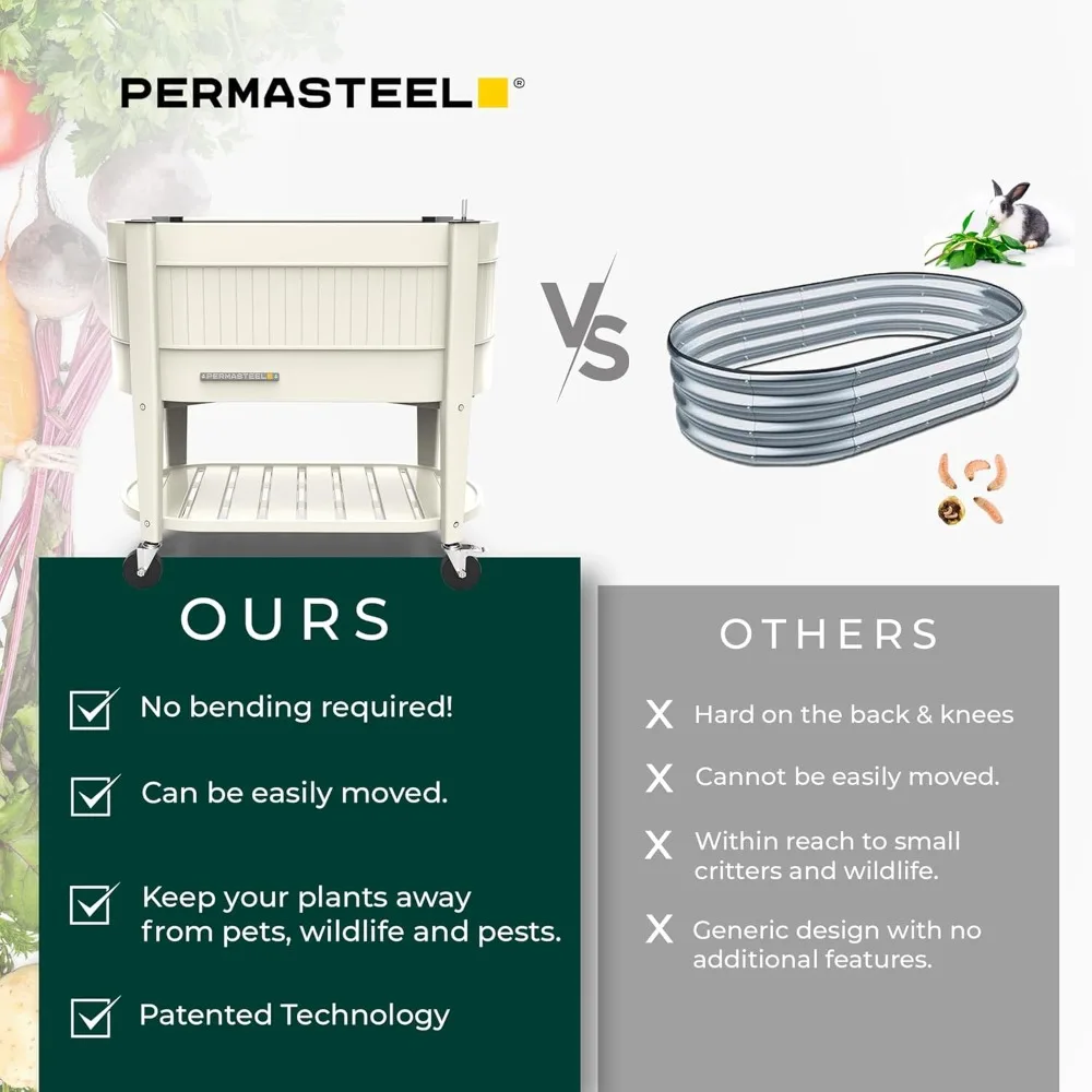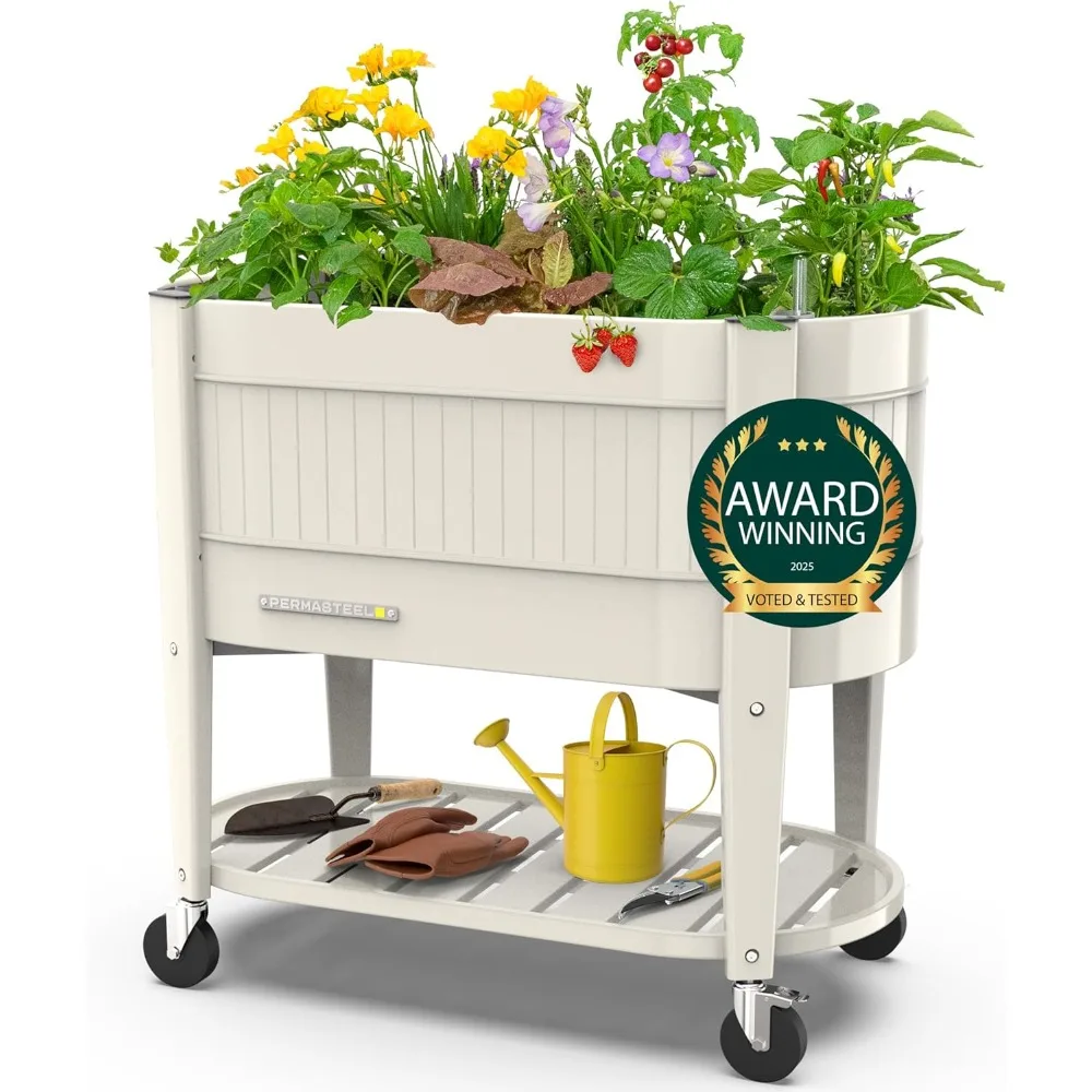 Raised Garden Bed with Legs, 40×20×37 in, Planter Box with EnGrow™ TrueSoil™ Technology for Vegetables, Flowers, Herbs, and Fruit, Outdoor Indoor, Storage Shelf, Ivory