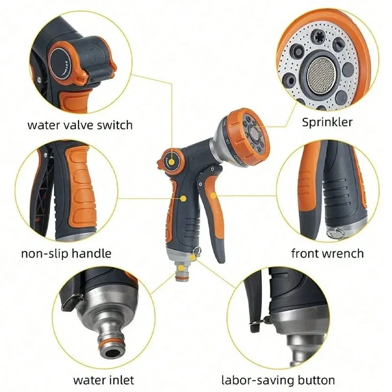 Black Blue Flexible Magic Hose 10 In 1 High-Pressure Water Gun, Suitable For Car Washing And Gardening Watering Tools 25FT-100FT